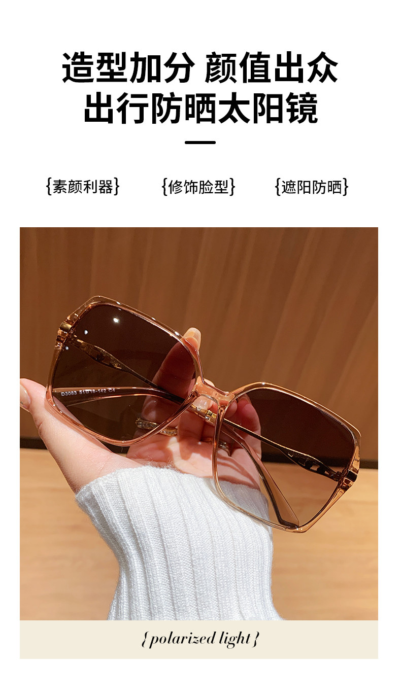 New Fashionable High-End Large-Frame Sunglasses for Women, Gradient Transparent, Small Face-Friendly, Anti-Uv Polarized Sunglasses, Sun Protection