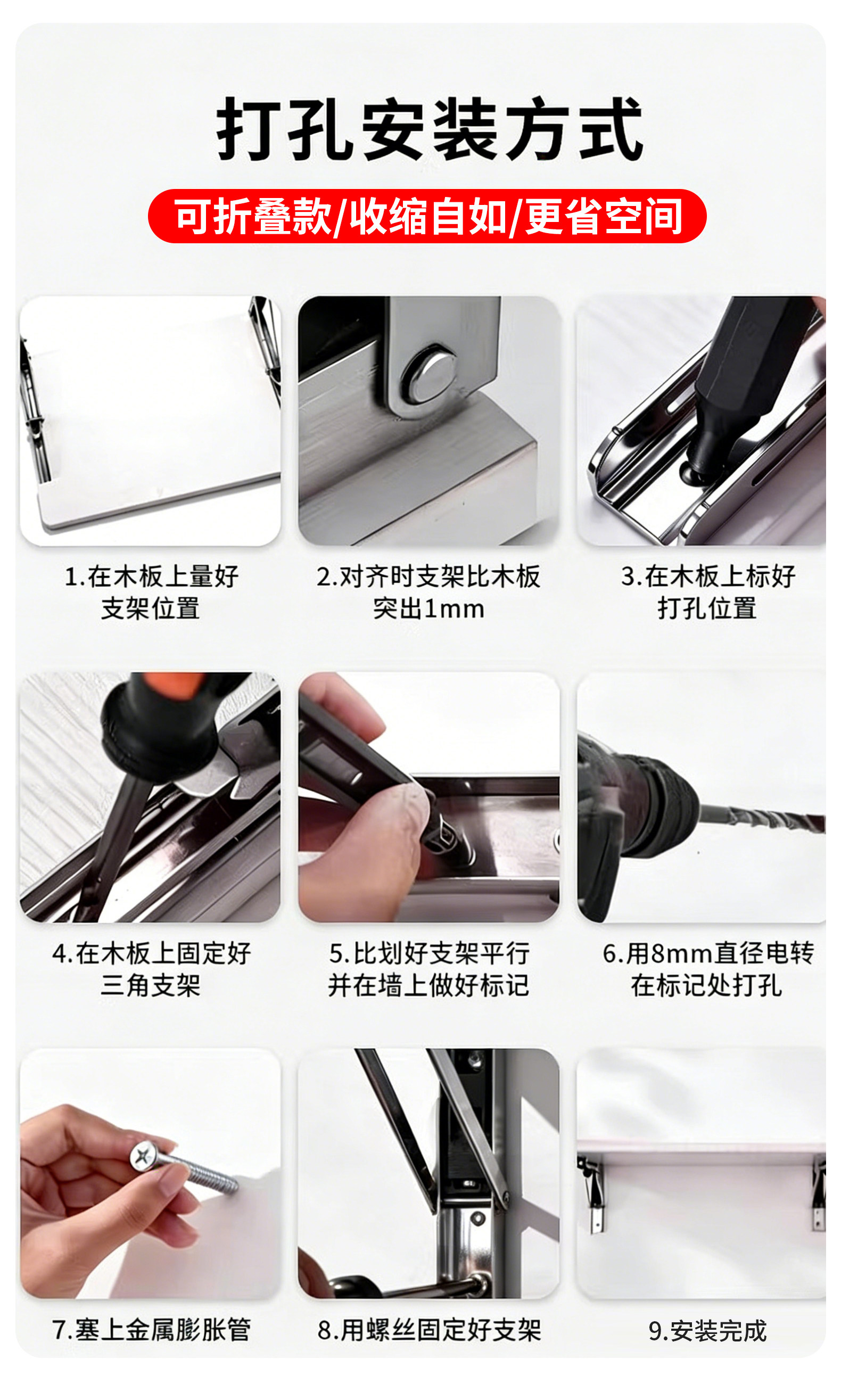 Stainless Steel Folding Bracket Wall-Mounted Shelf Partition Movable Triangle Bracket Support Frame Fixed Shelf Bracket