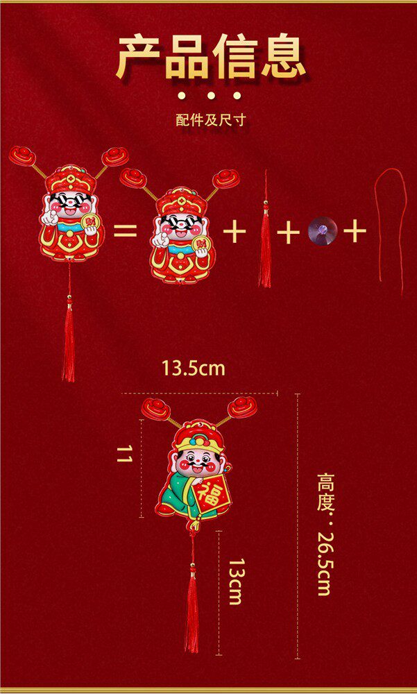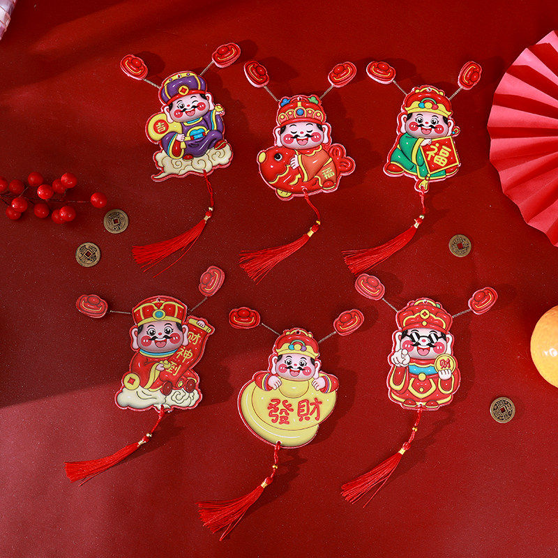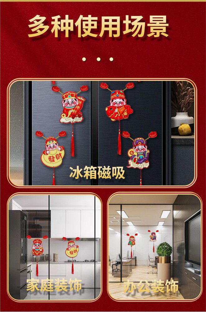 God of Wealth Fridge Magnet 3D Hanging Ornament New Year Festive Creative Gold-Stamped Living Room Decoration Potted Plant Hanging Decoration