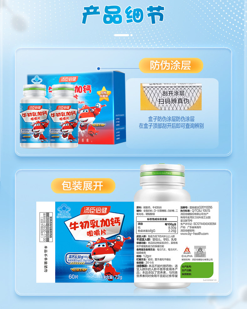 Tomson By-Health Calcium Tablets for Children, Colostrum Supplement, Immune Globulin, Growth and High Calcium Supplement, Official Store Genuine Product