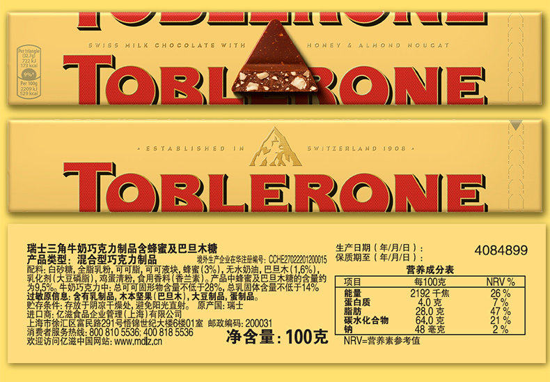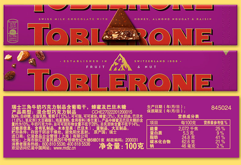 | Series | Toblerone Triangular Milk Chocolate 100G/Bar |