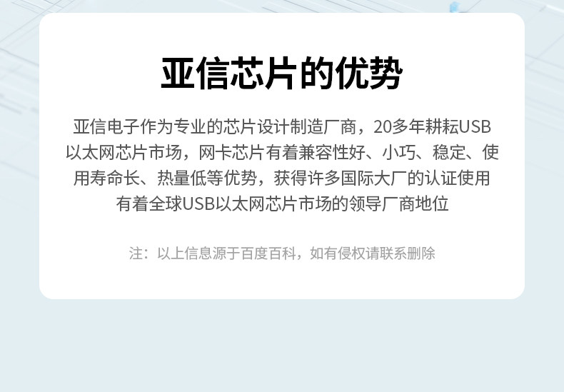 | Color Classification | [USB Network Card] 100m Network Port - Black - Durable Braided Cable - Stable Interface,[USB Network Card] 100m Network Port - White - Durable Braided Cable - Stable Interface,[USB Network Card] 100m Network Port - Black - Special Offer - Stable Interface,[USB to Network Port] 100M-White-Special Offer-Stable Interface,[USB Network Card] 100m Network Port - Black - Stable Interface,[USB Network Card] 100m Network Port - Aluminum Shell for Fast Heat Dissipation - Stable Interface,[USB Network Card] Gigabit Network Port - Black - Stable Interface,[USB to Network Port] Gigabit - White - Stable Interface,[USB Network Card] Gigabit Network Port - Black - Durable Braided Cable - Stable Interface,[USB Network Card] Gigabit Network Port - White - Durable Braided Cable - Stable Interface,[USB Network Card] Gigabit Network Port - Aluminum Shell for Fast Heat Dissipation - Stable Interface,[USB Network Card] 2.5g Network Port★Aluminum Shell Dissipates Heat Quickly - Stable Interface,[USB to Network Port] 2.5g - Aluminum Shell Dissipates Heat Quickly - Stable Interface,[USB Network Card] 5g Network Port★Aluminum Shell Fin Pattern Dissipates Heat Quickly - Stable Interface,----------The Following Is the Type-C Interface----------,[Usb+Type-C Network Card] Gigabit Network Port - Black - Durable Braided Cable - Stable Interface,[Type-C to Network Port] 100M-Black--Stable Interface,[Type-C Network Card] 100m Network Port - Black - Durable Braided Cable - Stable Interface,[Type-C Network Card] 100m Network Port - White - Durable Braided Cable - Stable Interface,[Type-C Network Card] 100m Network Port - Aluminum Shell for Fast Heat Dissipation - Stable Interface,[Type-C to Network Port] Gigabit - Black - Stable Interface,[Type-C Network Card] Gigabit Network Port - Black - Durable Braided Cable - Stable Interface,[Type-C Network Card] Gigabit Network Port - White - Durable Braided Cable - Stable Interface,[Type-C Network Card] Gigabit Network Port - Aluminum Shell for Fast Heat Dissipation - Stable Interface,[Type-C Network Card] Gigabit Network Port - Aluminum Shell for Fast Heat Dissipation - Pd Power Supply - Stable Interface,【Type-C to Ethernet Adapter】 Angled Gigabit - Aluminum Housing for Rapid Heat Dissipation - Pd Power Delivery - Secure Connection,[Type-C Network Card] 2.5g Network Port★Aluminum Shell Dissipates Heat Quickly - Stable Interface,[Type-C Network Card] 5g Network Port★Aluminum Shell Fin Pattern Dissipates Heat Quickly - Stable Interface,[Lightning to Network Port] Gigabit + Lightning Charging Port - Aluminum Shell Braided Wire - Stable Interface,----------The Following Is the Pcie Interface----------,[Gigabit] Pci-E to Network Port - Increased Network Speed and More Enjoyment,[Gigabit+Usb3.0X3] Pci-E to Network Port - More Convenient to Expand Interfaces,【2.5G】Pci-E to Network Port-High-Speed Network Enhancement,.. |