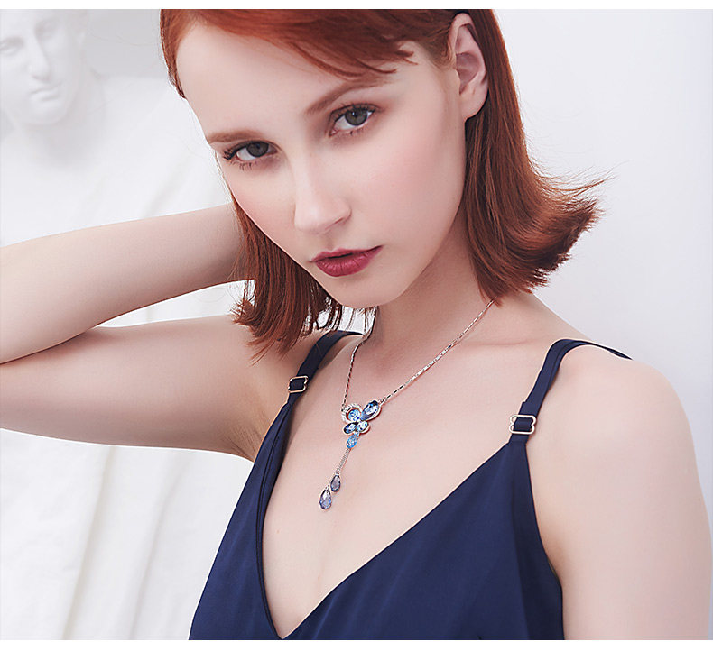 French Eternelle Butterfly Tassel Pendant Necklace European and American Style Fashion Clavicle Chain Elegant Birthday Gift