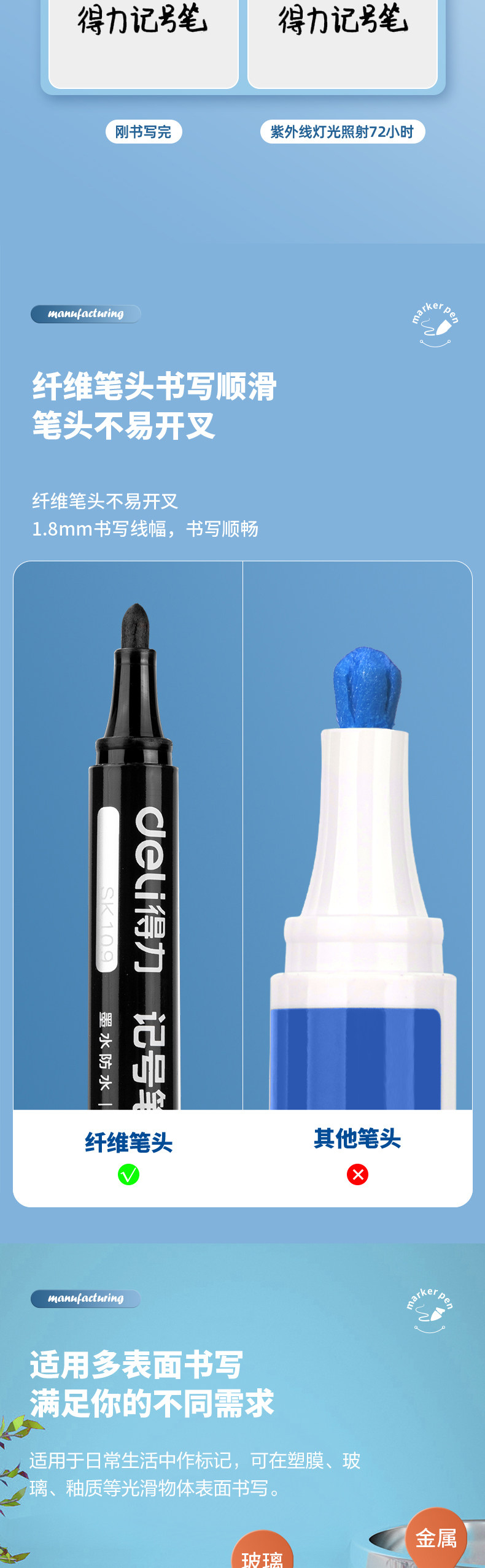 Deli Marker Pen, Quick-Drying, Waterproof, Oil-Based Ink, Large Tip, Oil-Based Marker, Thick Barrel, Black, Blue, Red, Waterproof, Non-Fading, Stationery, Teacher's Teaching Use, Express Delivery Marking Pen, Thick Line Width Marking