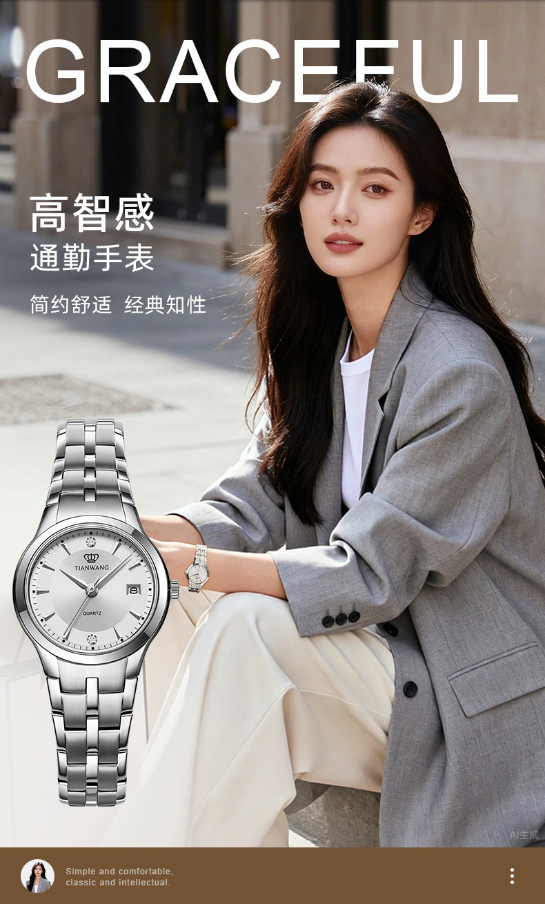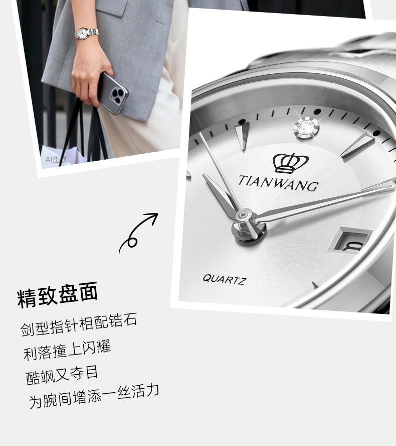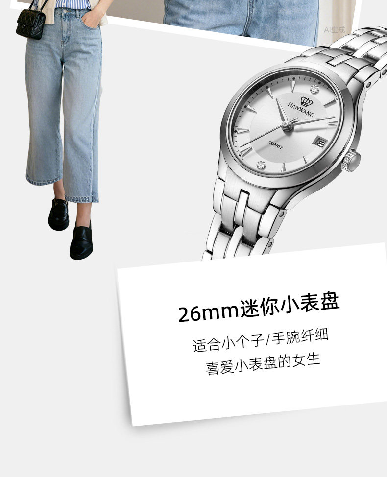 New Year's Gift Tianwang Watch Elegant Steel Band Small Dial Quartz Women's High-End Watch 3626