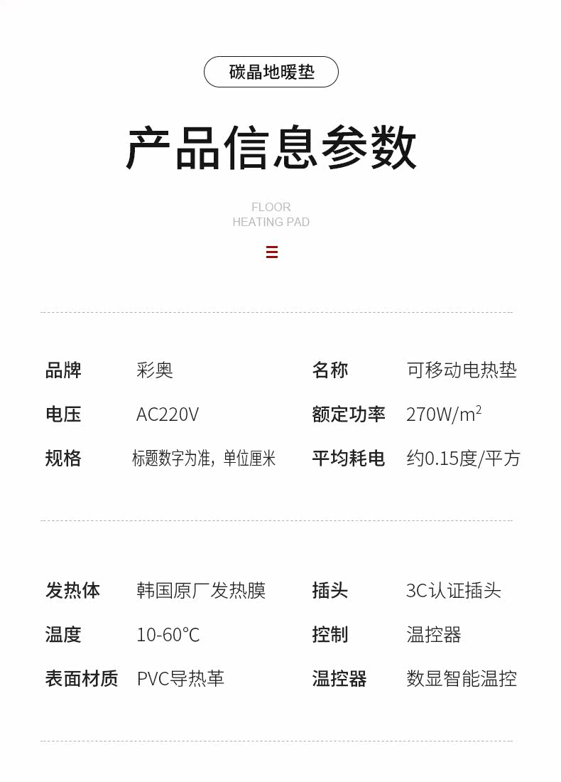 Caoao Korean Carbon Crystal Floor Heating Pad Electric Heating Carpet Yoga Mat Floor Heating Blanket Korean Floor Heating Blanket Floor Heating Pad 180*60