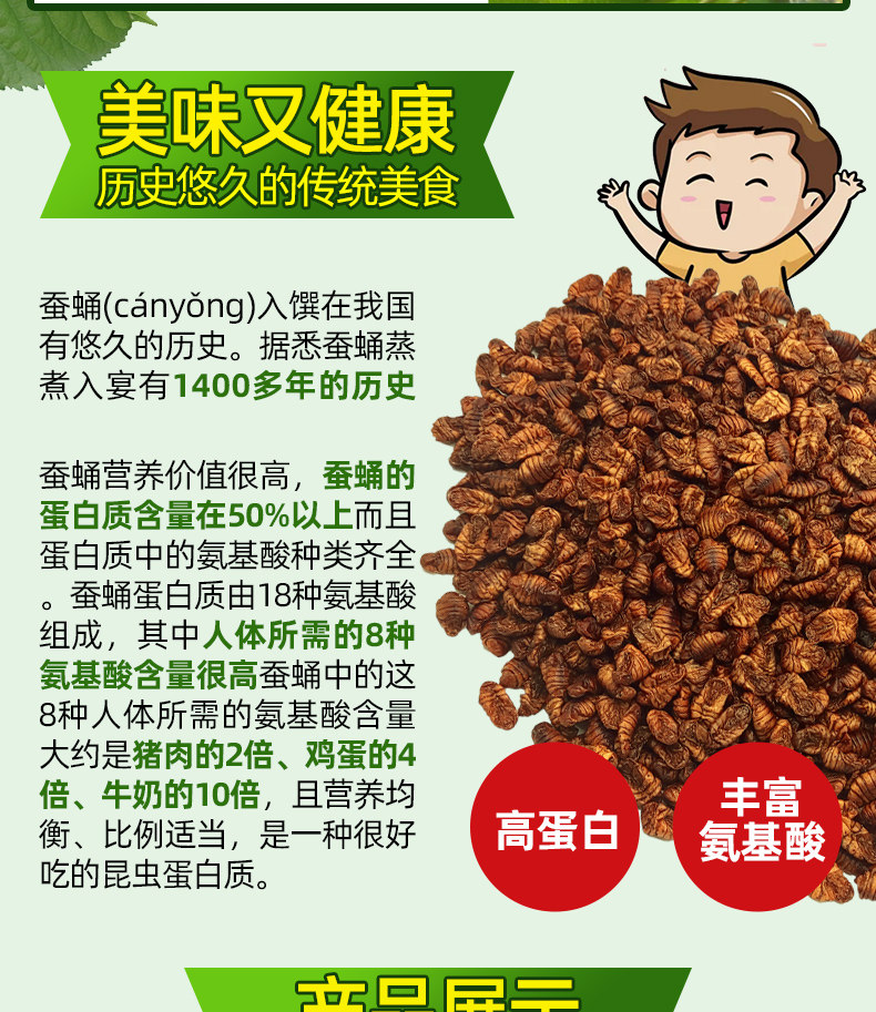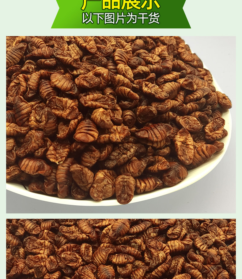 | Taste | For the Difference between First-Class and Feed Grade, Please See Details or Consult,(First-Class Drying) 250 Grams of Mulberry Pupae----Good Quality,(Super Premium Dried) Mulberry Cocoon 250g (Whole, Dried Mulberry Cocoons, Carefully Cut Open and Poured Out after Drying),(First-Class Drying) 500 Grams of Mulberry Pupae----Good Quality,(Super Premium Dried) Mulberry Cocoon 500g (Whole, Dried Mulberry Cocoons, Ready to Be Peeled and Poured Out),(First-Class Drying) 1000 Grams of Mulberry Pupae----Good Quality,(First-Class Drying) 2500 Grams of Mulberry Pupae----Good Quality,(First-Class Drying) 5000 Grams of Mulberry Pupae----Good Quality,(Food Grade Sun-Dried) Mulberry Silkworm Chrysalis 250g Pet Food Fish Bait Has Crumbs and Crumbs,(Food Grade Sun-Dried) 500g Pet Food and Fish Bait with Crushed Residue,(Food Grade Sun-Dried) 1000g Pet Food and Fish Bait with Crushed Residue,(Food Grade Sun-Dried) Mulberry Silkworm Chrysalis 2500g Pet Food Fish Bait Has Crumbs and Crumbs,(Food Grade Sun-Dried) 5000g Pet Food and Fish Bait with Crushed Residue |