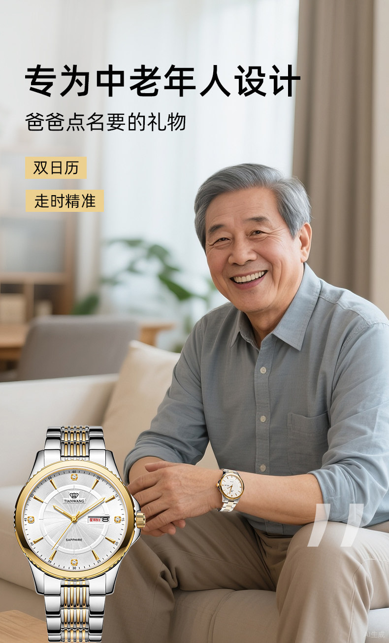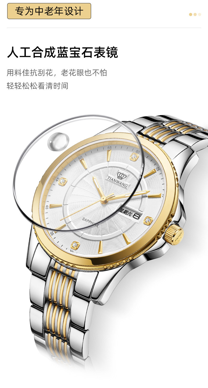 Tianwang Watch Business Dual Calendar Quartz Watch Waterproof Men's Watch 3731 Birthday Gift for Dad