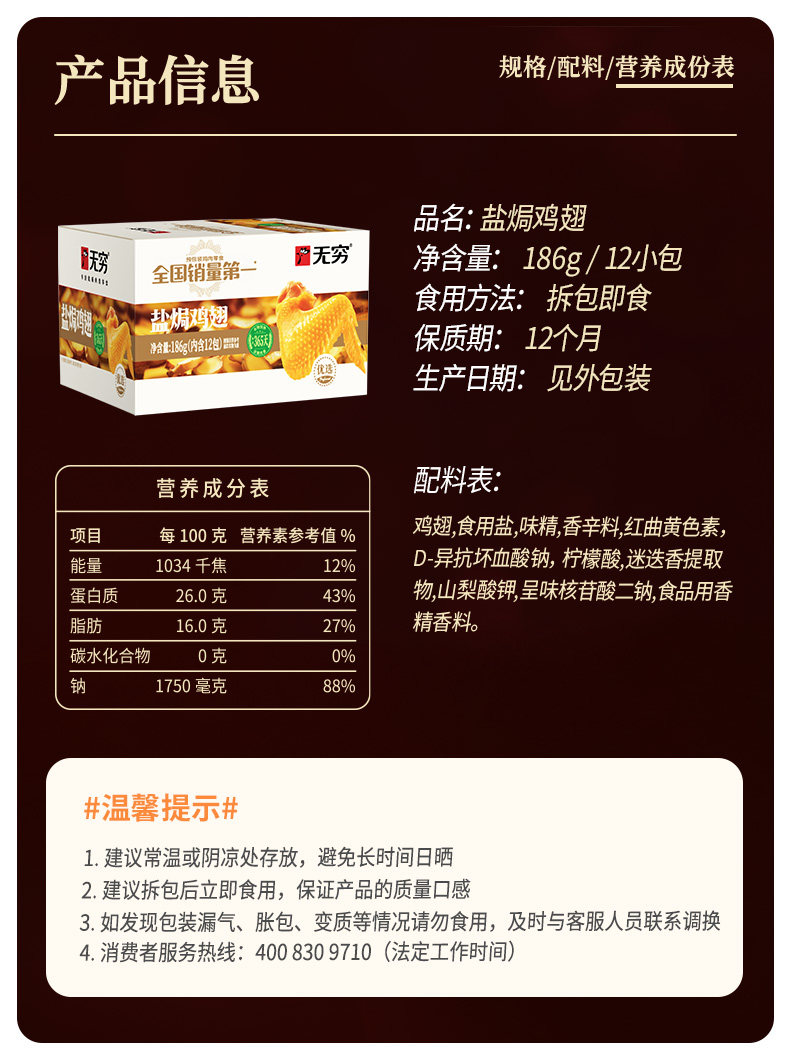 Infinite Salt-Baked Chicken Wings, 12 Pieces, Spicy Flavor, Snack Food, Popular Snack, Hunger-Relief, Late-Night Snack, Whole Box of Ready-To-Eat Food