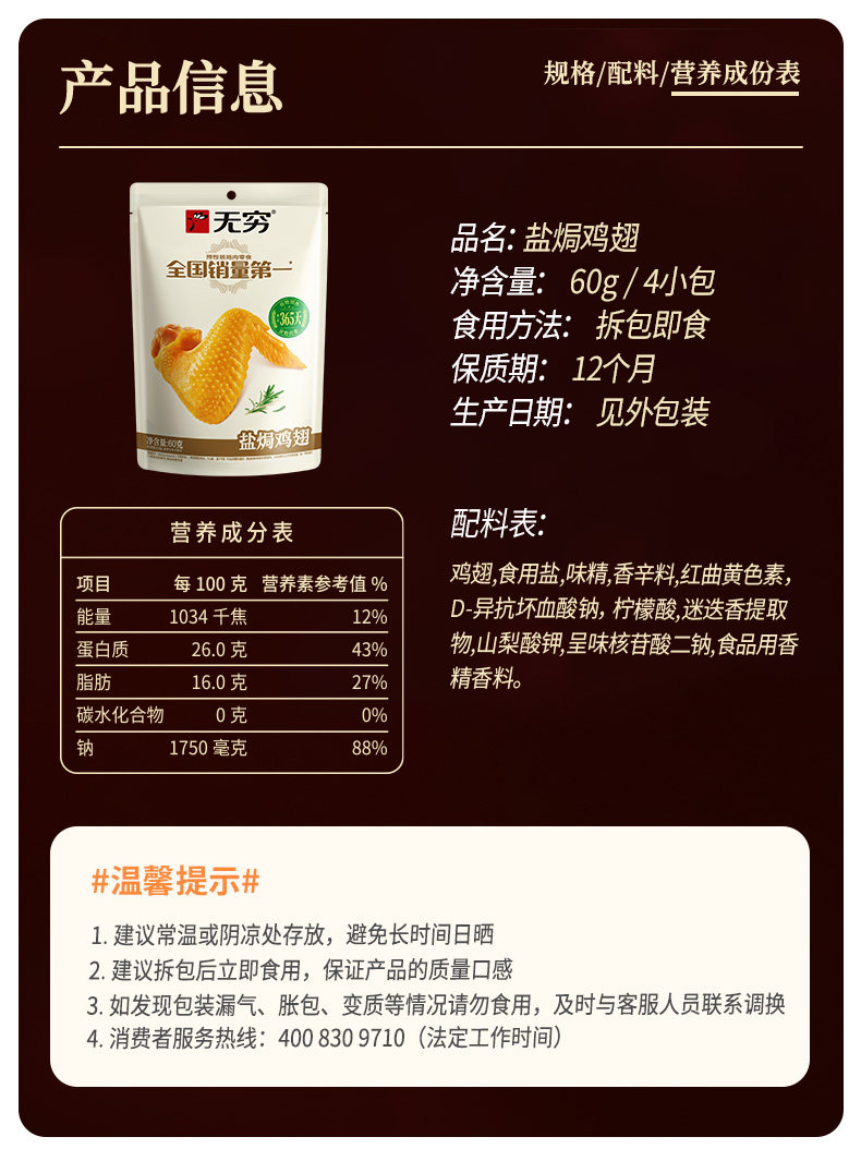 | Taste | 186g Salt-Baked Flavor/Box (12 Packets in Total)-20 Years Classic,60g Spicy Chicken Wings*3 Bags (12 Small Bags in Total),60g Salt-Baked Chicken Wings*3 Bags (12 Small Bags in Total) - Easy to Carry,60g Salt-Baked Chicken Wings*2 Bags + 60g Spicy Chicken Wings*2 Bags (16 Small Bags in Total),60g Spicy Chicken Wings*4 Bags (16 Small Bags in Total),60g Salt-Baked Chicken Wings*4 Bags (16 Small Bags in Total),Must Read before Buying! ! ! for Convenience of Consumption, Each Small Package Contains Only Wing Mid or Wing Root, Not Wing Tip |