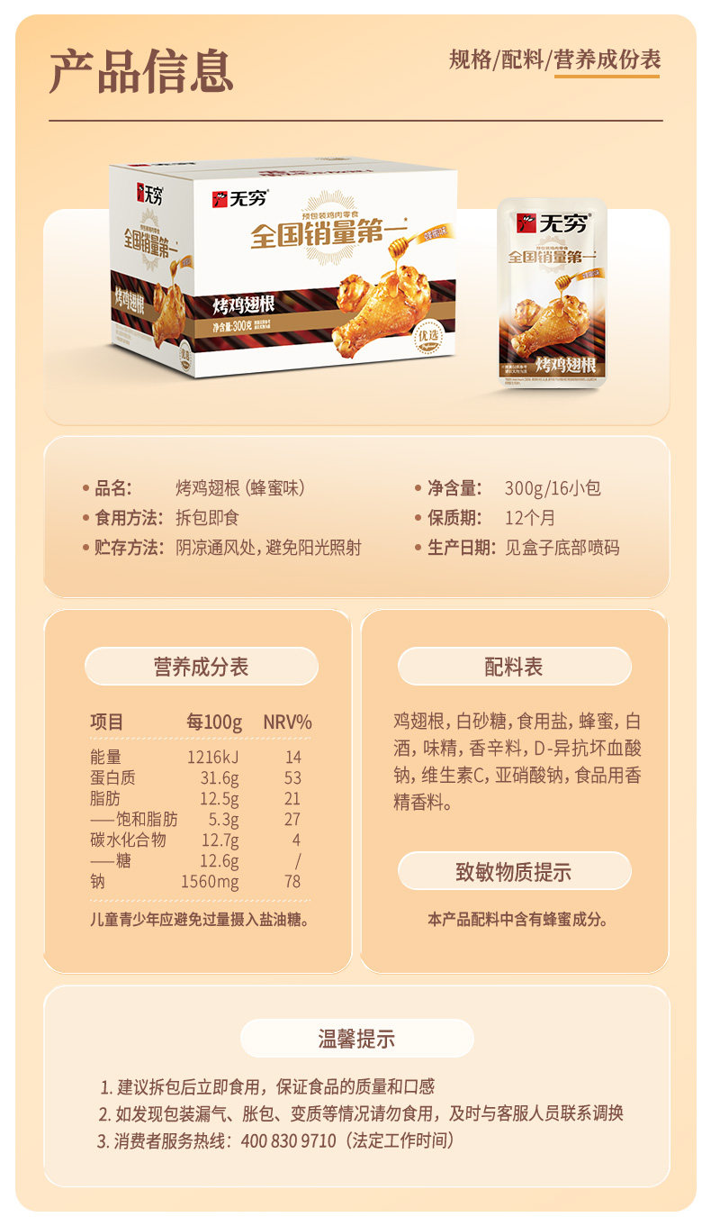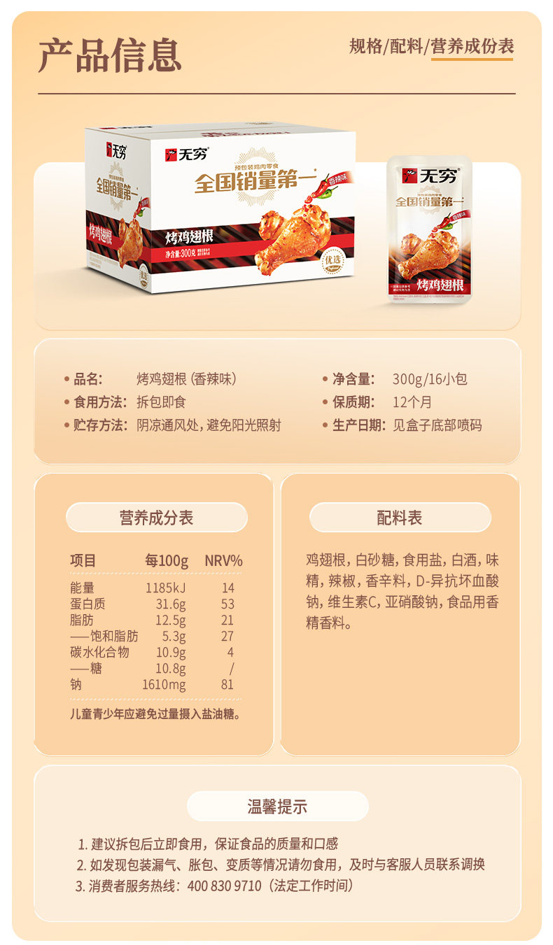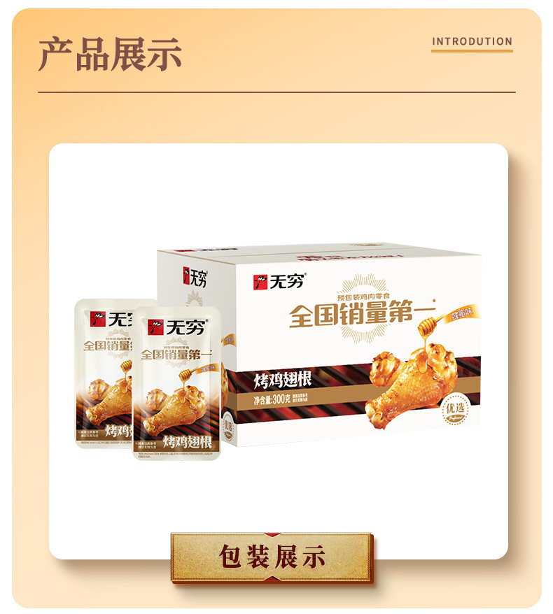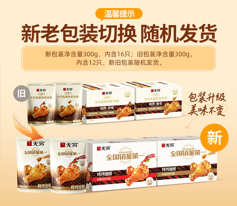 Taste Honey Flavor 300g*1 Box (12 Packs in Total),Spicy Flavor 300g*1 Box (12 Packs in Total),105g Honey Flavor*3 Bags (12 Bags in Total),105g Spicy Flavor*3 Bags (12 Bags in Total),105g Honey Grilled Chicken Wing Root*2 Bags+105G Spicy Grilled Chicken Wing Root*1 Bag,105g Honey Roasted Chicken Wing Root*1 Bag+60G Honey Roasted Chicken Scapula Meat*3 Bags,Orleans Grilled Chicken Wing Root 120g*2 Bags + 30g Whole Air-Dried Chicken Neck,120g Orleans Grilled Chicken Wing Root*1 Bag+60G Grilled Chicken Scapula Meat*2 Bags,105g Spicy Grilled Chicken Wing Root*1 Bag+60G Honey Grilled Chicken Scapula Meat*3 Bags,160°Constant Temperature Hanging Baking,Don'T Get Angry,Mixed Flavors to Satisfy Taste Buds,Honey Flavor,Kids Love to Eat,Spicy,The Aroma of Burnt Fragrance