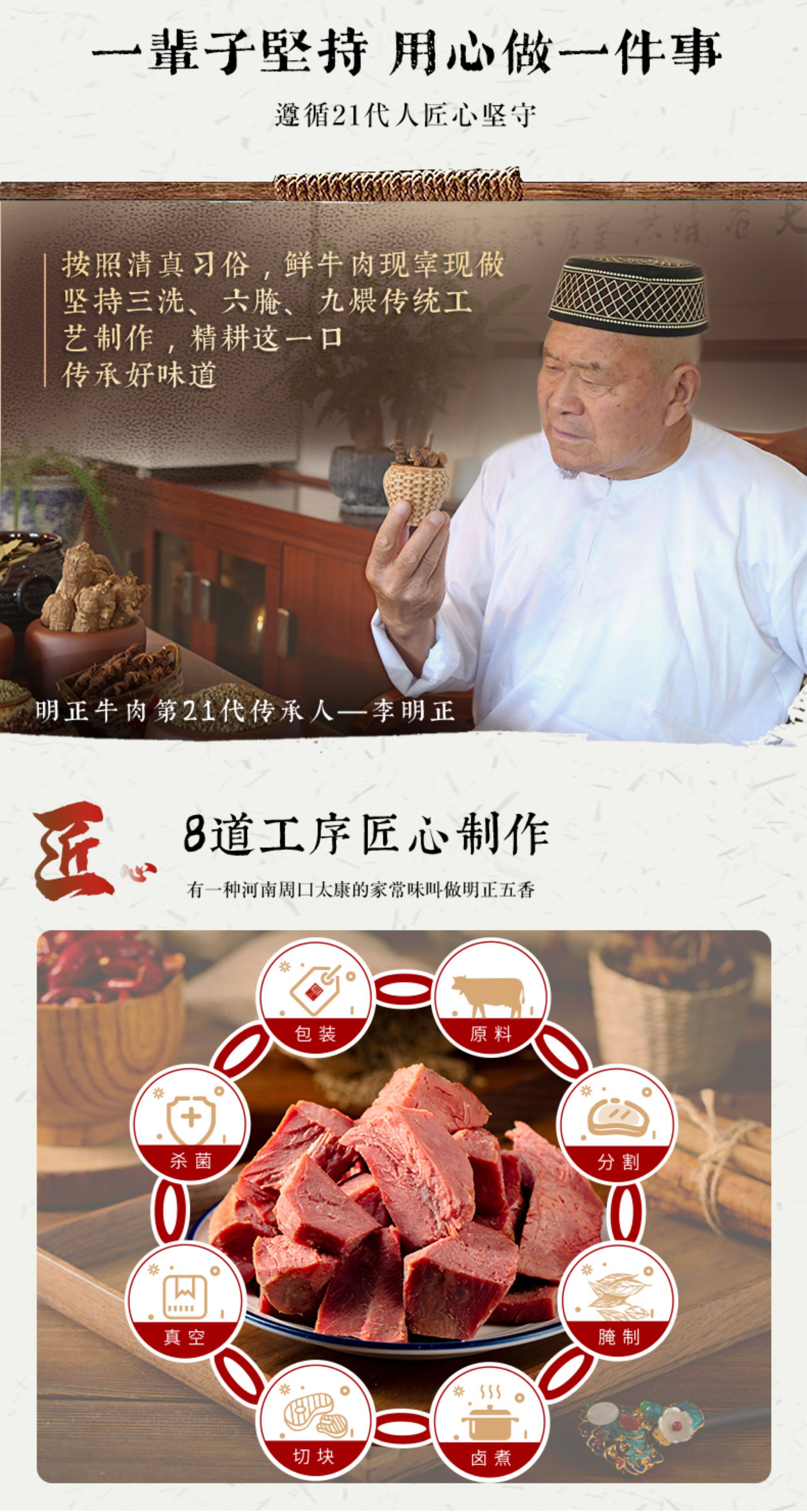 Henan Specialty Zhoukou Mingzheng Halal Five-Spice Sauce Braised Yellow Beef Vacuum Package Ready-To-Eat Cooked Beef Small Bag Gift Box