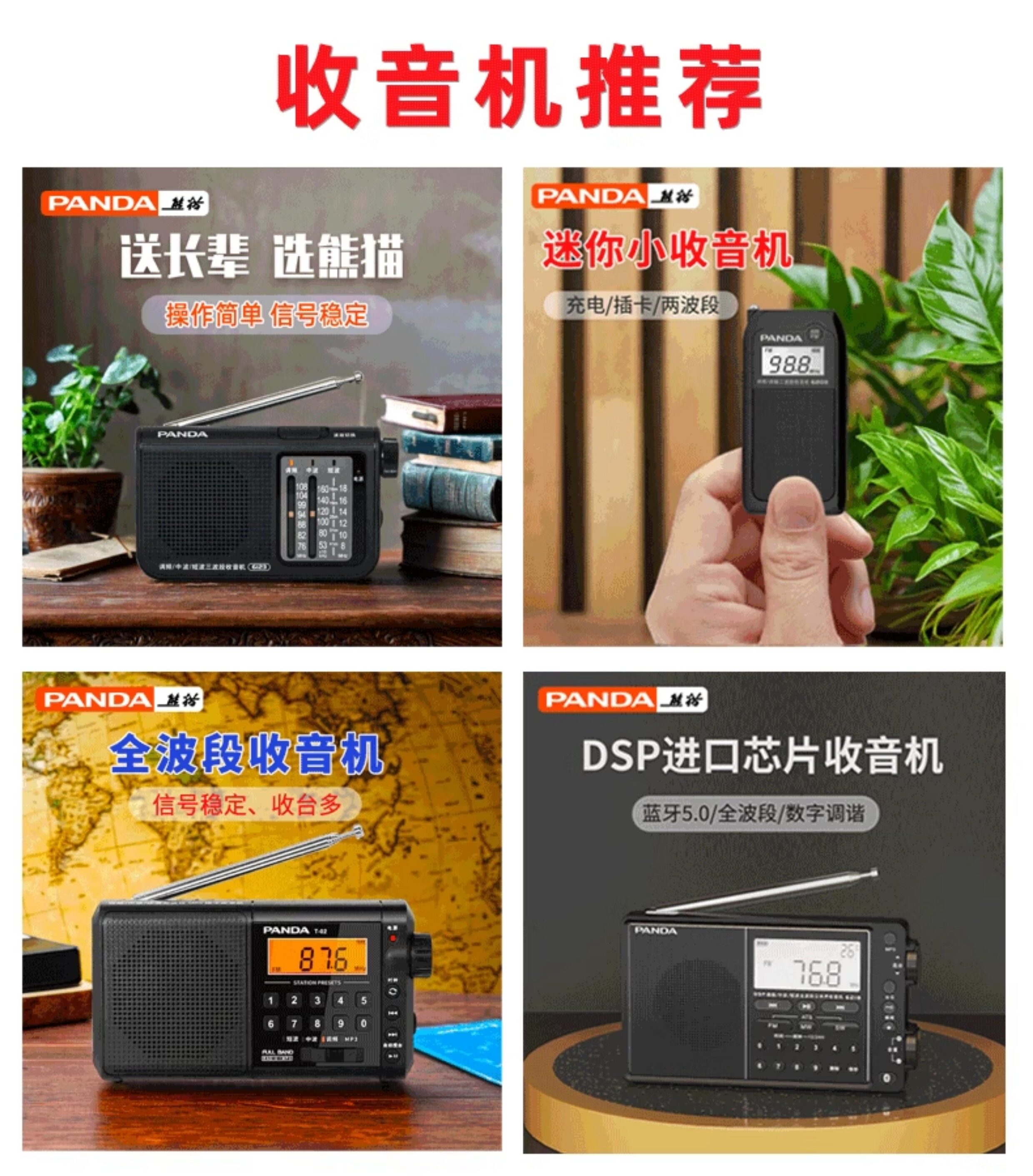 Panda T-16 Radio for the Elderly, Full-Band Fm, Vintage Retro-Style Desktop Nostalgic Semiconductor Radio for Seniors