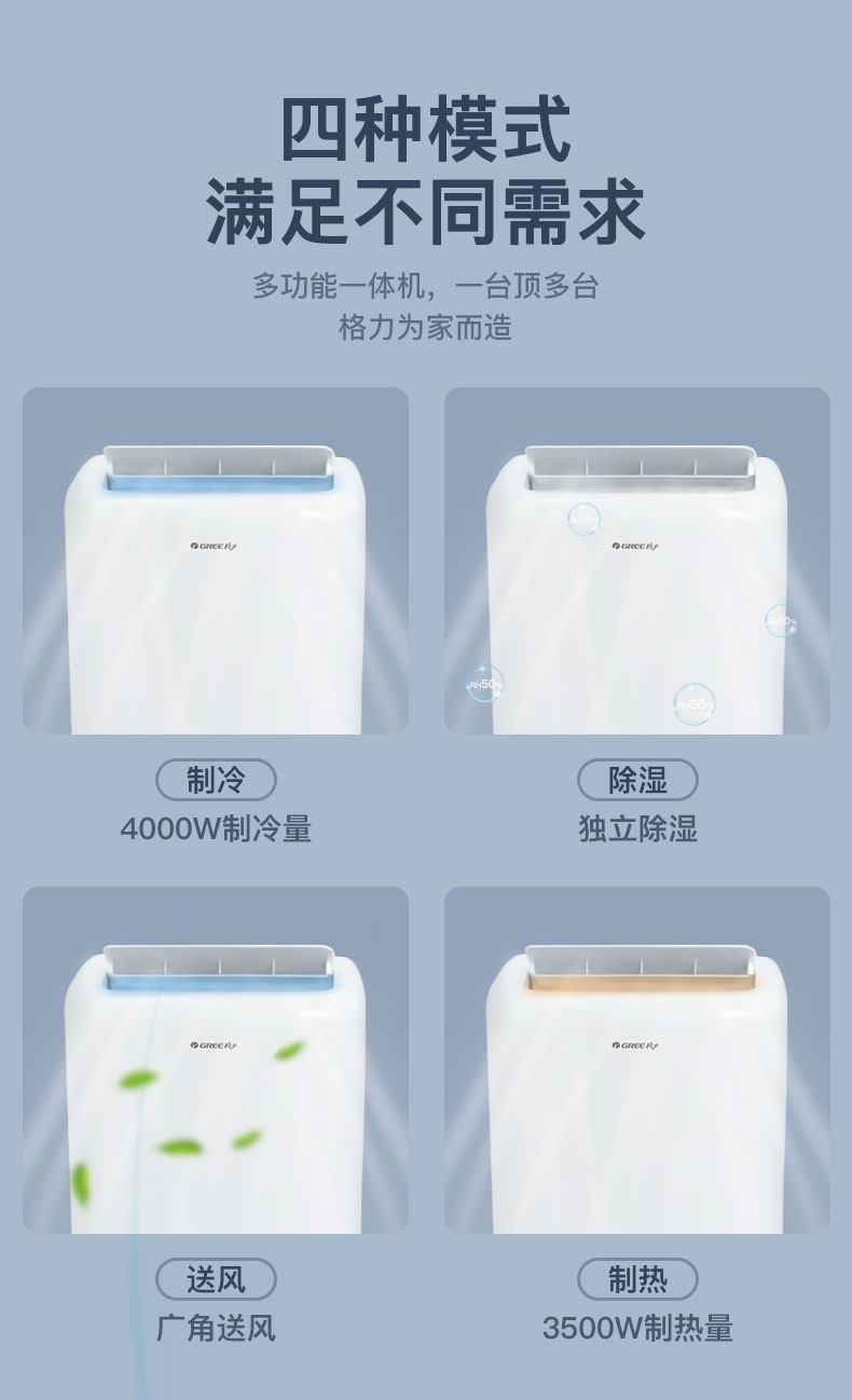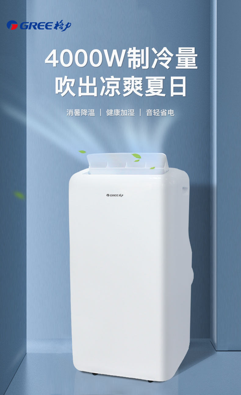 Gree 2P Portable Air Conditioner, Dual-Use for Cooling and Heating, All-In-One Machine for Home, Kitchen, Store, Vertical Type, No External Unit, No Installation Required