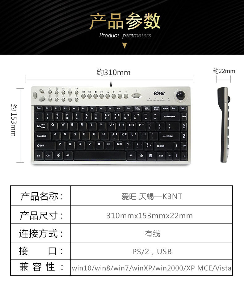 Aiwang Ione Scorpio K3Nt Trackball Industrial Control Multimedia Shortcut Key Keyboard USB Interface Small Keyboard