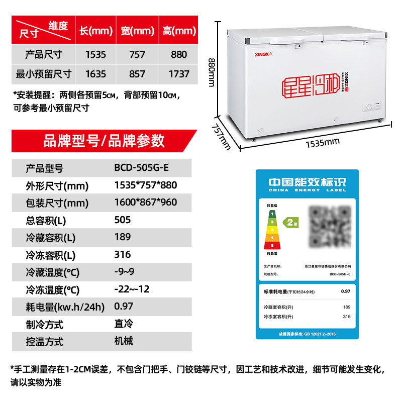 Star Freezer Household Refrigerator Commercial Large-Capacity Refrigeration and Freezing Dual-Use Small Dual-Temperature Freezer