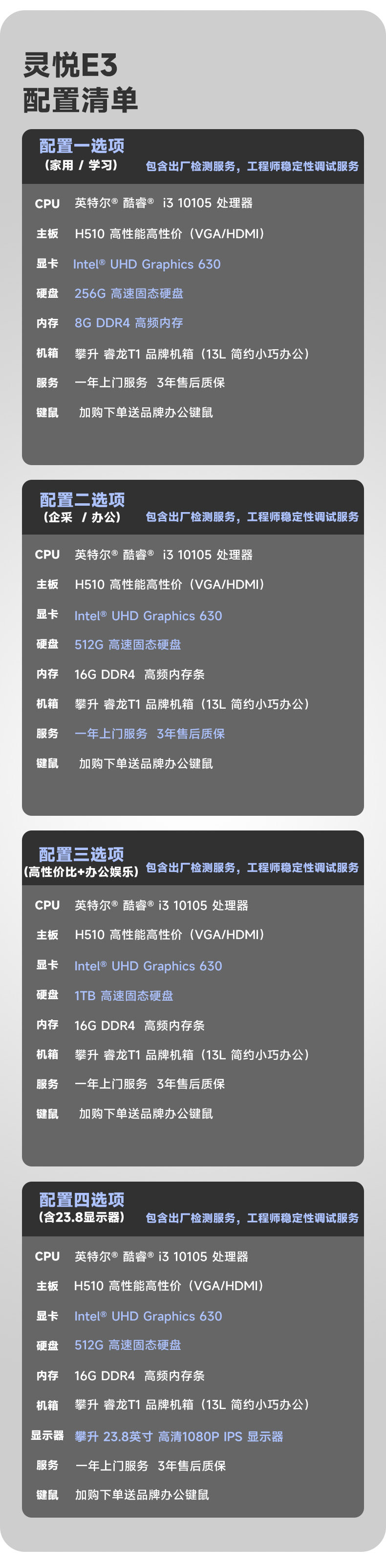 Climb Lingyue E3 I3 10105 Office Computer Specially Designed for High-Performance Home DIY Assembly Desktop Computer Complete Set