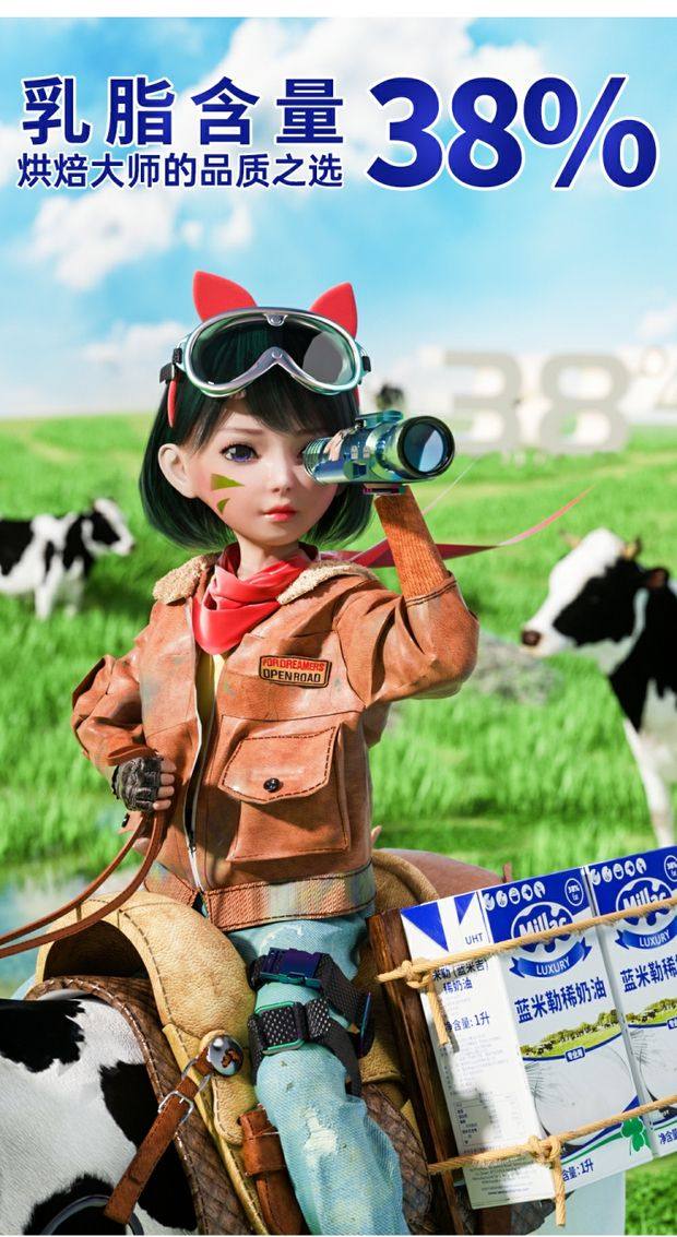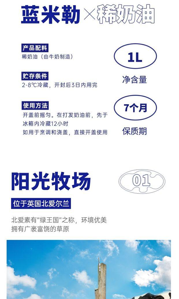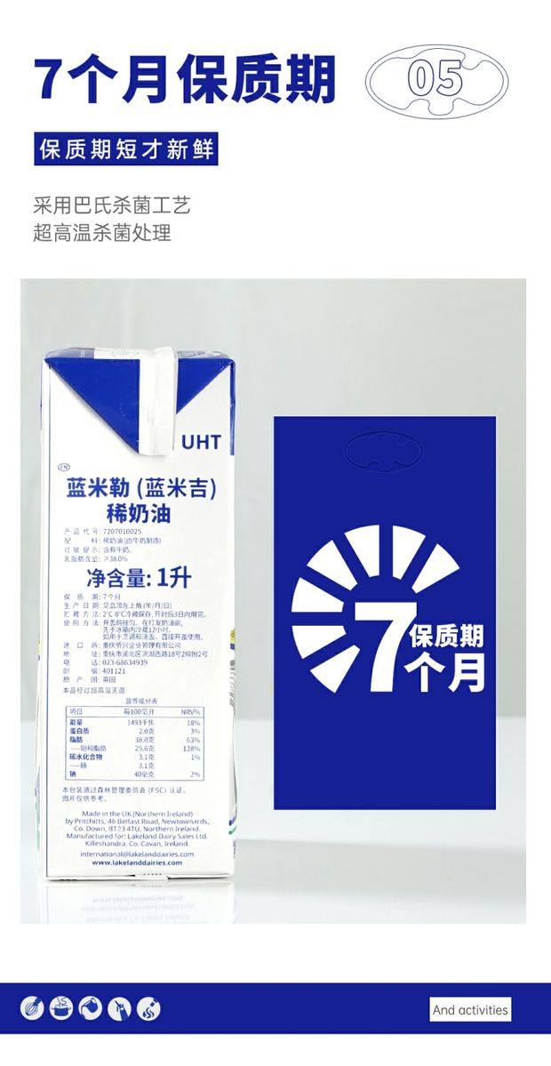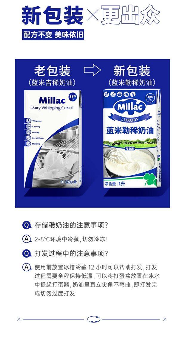 Blue Mi Ji Windmill Light Cream 1L Animal-Based Fresh Cream for Cake Decorating, Home Use, Ice Cream, Blue Baking Ingredients