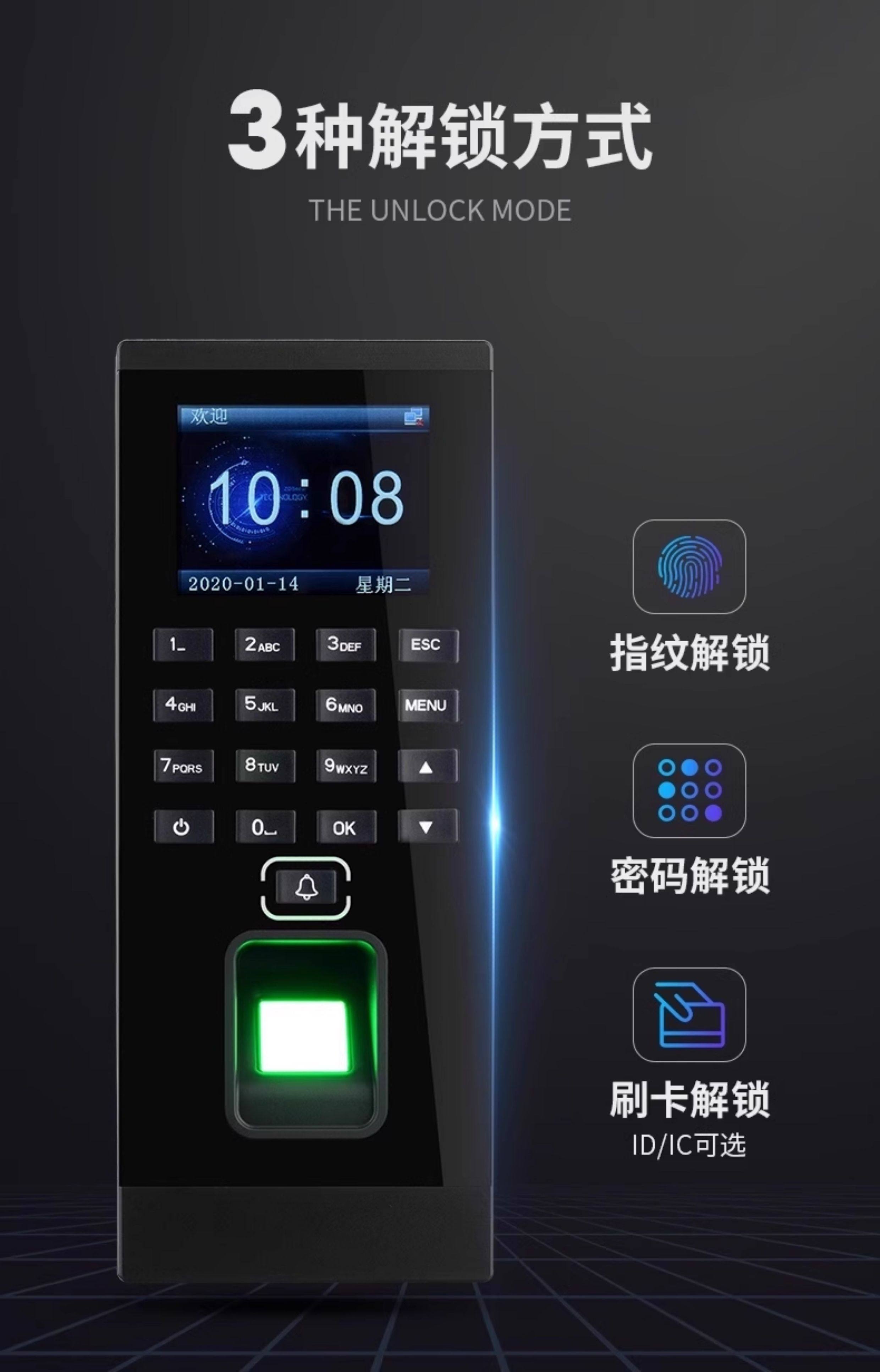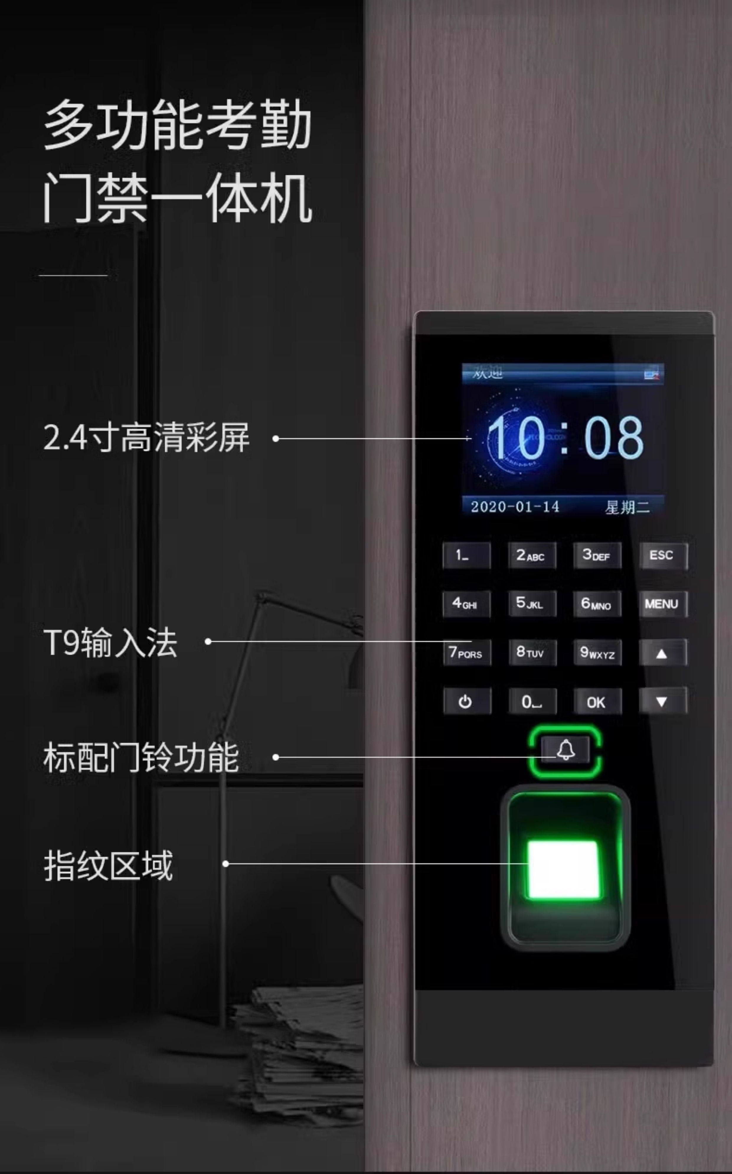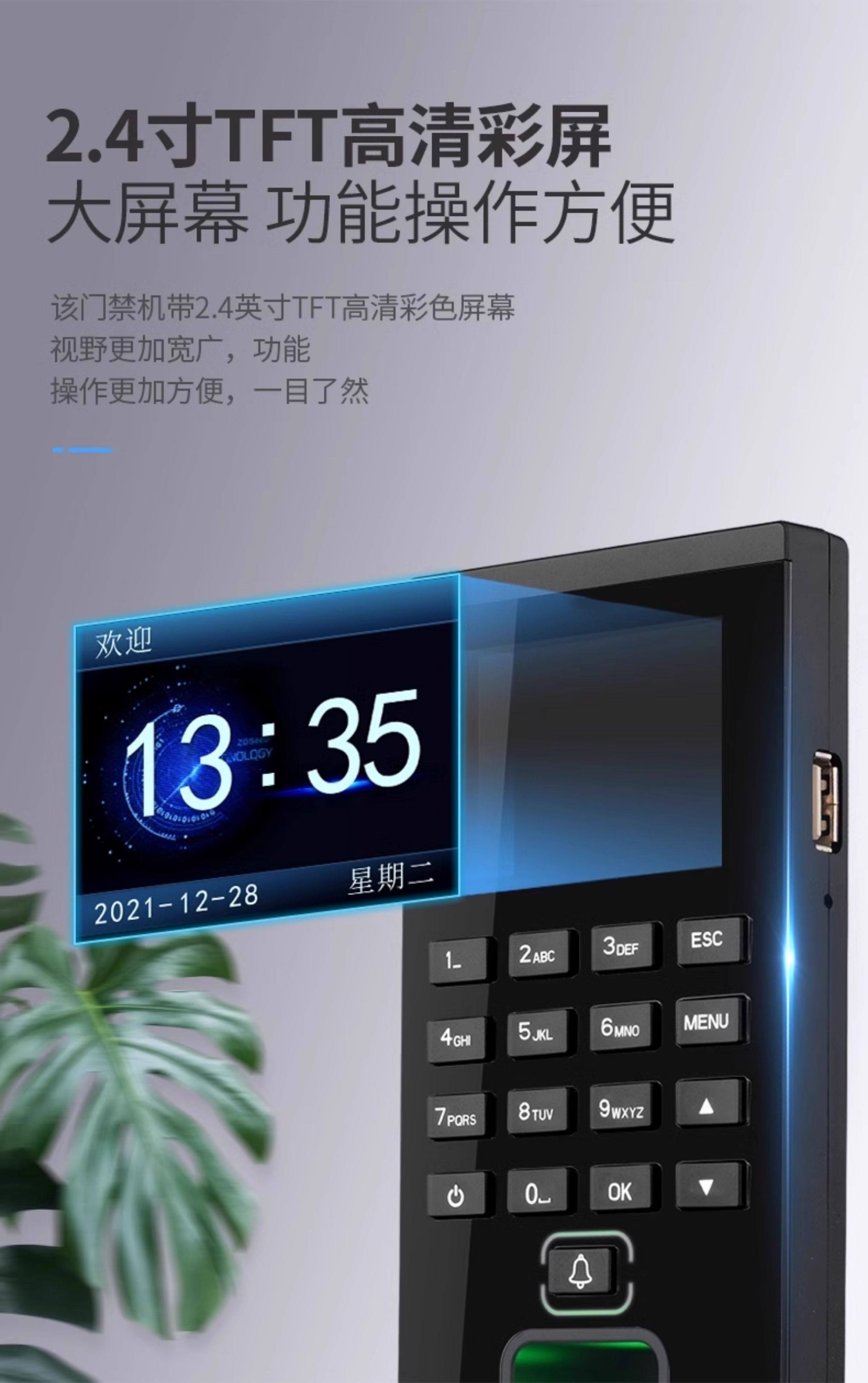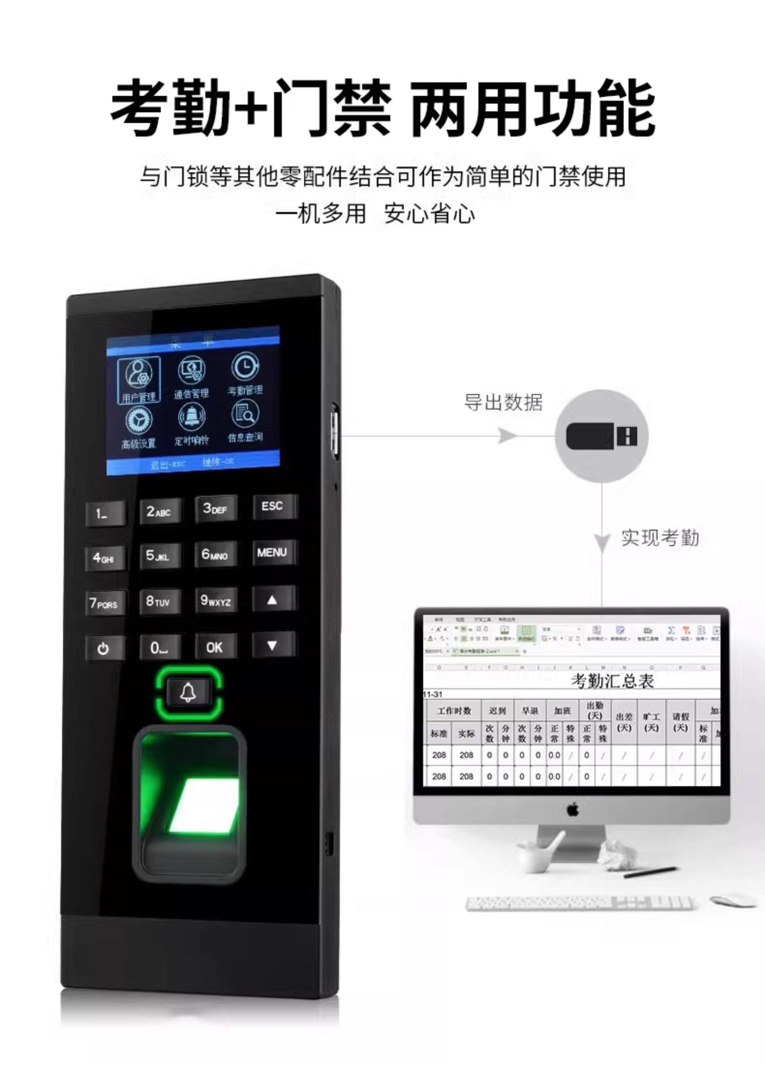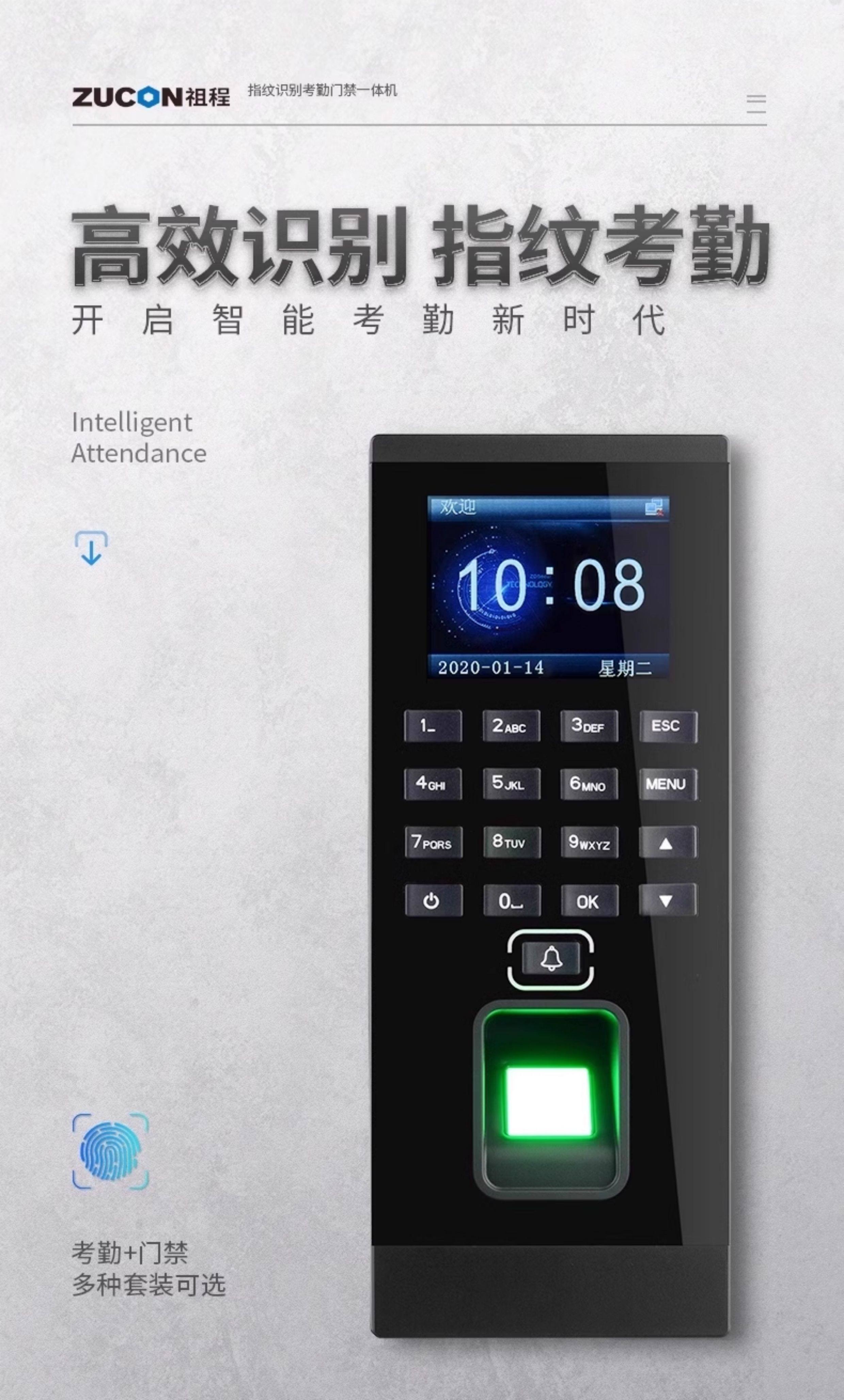 Zucon Fingerprint Attendance and Access Control System All-In-One Machine Swipe Card Password Office Electronic Access Control Electromagnetic Lock Set