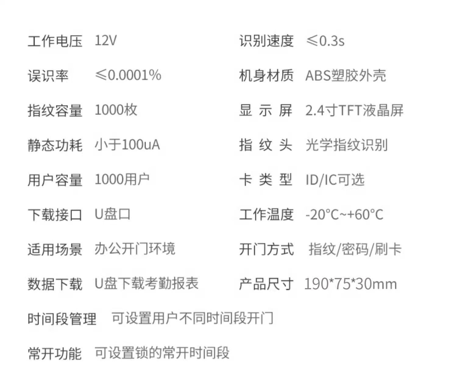 | Color Classification | F91_Id Fingerprint Machine [U Disk Attendance + Fingerprint/Swipe Id Card/Password + 3000 Users],F92_Id Fingerprint Machine [U Disk Attendance + Fingerprint/Swipe Id Card/Password + 1000 Users],F92_Ic Fingerprint Machine [U Disk Attendance + Fingerprint/Swipe Ic Card/Password + 1000 Users],F91_Id Model No. 2 Single-Leaf Wooden Door/Framed Glass Door,F91_Id Model No. 3 Single-Leaf Wooden Door/Iron Door [Outside Opening],F91_Id Model No. 4 Single-Leaf Wooden Door/Iron Door [Inside Opening],F91_Id No. 6 Double-Leaf Wooden Door/Iron Door [Inside Opening],F91_Id Model No. 7 Double-Leaf Wooden Door/Iron Door [Outside Opening],F91_Id Model No. 8 Double Glass Door Requires Grooving,F91_Id Model No. 12 Single Glass Door with U Clip,F91_Id Model No. 13 Double Glass Door with U Clip,F92_Id Model #2 Single-Leaf Wooden Door with Framed Glass Door [Framed Top, Unframed Glass] - Requires Recessed Installation,F92_Id Model No. 3 Single-Leaf Wooden Door/Iron Door [Outward Opening] - No Bracket Required,F92_Id Model No. 4 Single-Leaf Wooden Door/Iron Door [Inward Opening] with Zl Bracket,F92_Id Model No. 5 Single-Leaf Glass Door [No Frame on Top, No Edging on Glass],F92_Id Model No. 6 Double-Leaf Wooden Door and Iron Door [Inside Opening] with Zl Bracket,F92_Id Model No. 7 Double Door Wooden/Iron Door [Outward Opening] - No Bracket Required,F92_Id Model #8 Double Door Glass Door [with Frame, Unframed Glass] - Requires Recessed Installation,F92_Id Model No. 9 Double-Leaf Glass Door [No Frame on Top, No Edging on Glass],F92_Id Model No. 10 Single-Leaf Wooden Door/Iron Door [Outward Opening] with L-Bracket,F92_Id Model No. 11 Double-Leaf Wooden Door and Iron Door [Outside Opening] with L Bracket,F92_Id Model #12 Single-Leaf Glass Door [with Frame, Unframed Glass] with U-Clip,F92_Id Model #13 Double Door Glass Door [with Frame, Unframed Glass] with U-Clip,Ic Model #2 Single-Leaf Wooden Door with Framed Glass Door [Framed Top, Unframed Glass] - Requires Grooving,Ic Model #3 Single-Leaf Wooden Door/Iron Door [Outward Opening] - No Bracket Required,Ic Model #4 Single-Leaf Wooden Door/Iron Door [Inward Opening] with Zl Bracket,Ic Model #6 Double Door (Wooden/Iron) - Inward Opening with Zl Bracket,Ic Model #7 Double Door Wooden/Iron Door [Outward Opening] - No Bracket Required,Ic Model #8 Double Door Glass Door [with Frame, Unframed Glass] - Requires Recessed Installation,Ic Model #12 Single-Leaf Glass Door [with Frame, Unwrapped Glass] with U-Clamp,Ic Model #13 Double Door Glass Door [with Frame, Unwrapped Glass] with U-Clip |