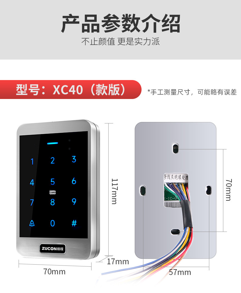 | Color Classification | Xc40-Id Metal Access Control All-In-One Machine/Reader,Xc40-Id Metal Access Control All-In-One Machine/Reader (This Model Is the Default for the Set),Xc50-Id Metal Access Control All-In-One Machine/Reader,Xc40-Ic Golden Metal Access Control All-In-One Machine,Xc40-Id Waterproof Metal Access Control All-In-One Machine/Reader,Xc40-Ic Metal Access Control All-In-One Machine/Reader,Xc40-Ic Waterproof Metal Access Control All-In-One Machine/Reader,Xc40-Id Metal Access Control All-In-One Machine/Reader (Wifi Mobile Phone Remote),Xc40-Gold All-In-One Machine[Ic Waterproof Version],Id Style #1 Single-Leaf Wooden Door with Framed Glass Door[There Is a Frame on It and the Glass Is Edged]Need to Dig a Trench,Id Style #2 Single-Leaf Wooden Door with Framed Glass Door[With Frame, Glass Without Edges]Need to Dig a Trench,Id Model No. 3 Single-Leaf Wooden Door Iron Door[Open Outside]No Bracket Required,Id Model No. 4 Single-Leaf Wooden Door Iron Door[Open Inward]With Zl Bracket,Id Model No. 5 Single Fan Frameless Glass Door Set,Id Model No. 6 Double-Leaf Wooden Door and Iron Door[Open Inward]With Zl Bracket,Id Model No. 7 Double-Leaf Wooden Door and Iron Door[Open Outside]No Bracket Required,Id Model No. 8 Double Glass Door[With Frame, Glass Without Edges]Need to Dig a Trench,Id Model No. 9 Double Glass Door[No Frame, No Edging on the Glass],Id Model No. 10 Single-Leaf Wooden Door Iron Door[Open Outside]With L Bracket,Id Model No. 11 Double-Leaf Wooden Door and Iron Door[Open Outside]With L Bracket,Id Model No. 12 Single Glass Door[With Frame, Glass Without Edges]With U-Shaped Clip,Id Model No. 13 Double Glass Door[With Frame, Glass Without Edges]With U-Shaped Clip,Ic Model #1 Single-Leaf Wooden Door with Framed Glass Door[There Is a Frame on It and the Glass Is Edged]Need to Dig a Trench,Ic Model #2 Single-Leaf Wooden Door with Framed Glass Door[With Frame, Glass Without Edges]Need to Dig a Trench,Ic Model #3 Single-Leaf Wooden Door, Iron Door[Open Outside]No Bracket Required,Ic Model #4 Single-Leaf Wooden Door, Iron Door[Open Inward]With Zl Bracket,Ic Model #5 Single-Door Frameless Glass Door Set,Ic Model No. 6 Double-Leaf Wooden Door and Iron Door[Open Inward]With Zl Bracket,Ic Model No. 7 Double-Leaf Wooden Door and Iron Door[Open Outside]No Bracket Required,Ic Model #8 Double Door Glass Door[With Frame, Glass Without Edges]Need to Dig a Trench,Ic Model #9 Double Door Glass Door[No Frame, No Edging on the Glass],Ic Model #10 Single-Leaf Wooden Door, Iron Door[Open Outside]With L Bracket,Ic Model No. 11 Double-Leaf Wooden Door and Iron Door[Open Outside]With L Bracket,Ic Model #12 Single-Leaf Glass Door[With Frame, Glass Without Edges]With U-Shaped Clip,Ic Model No. 13 Double Glass Door[With Frame, Glass Without Edges]With U-Shaped Clip |