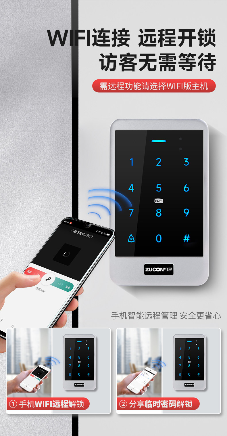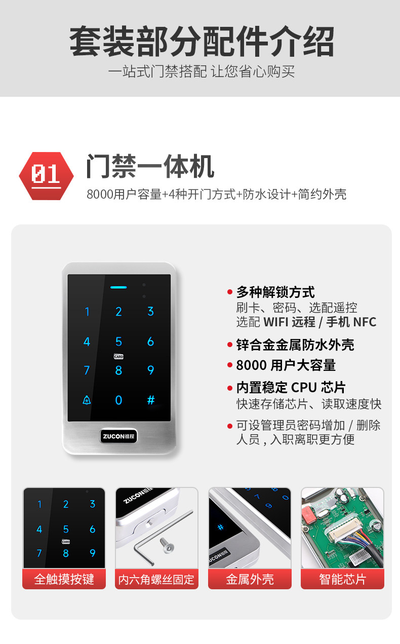 Zucon Metal Waterproof Access Control System All-In-One Machine Swipe Card Password Community Access Control System Set Electromagnetic Lock