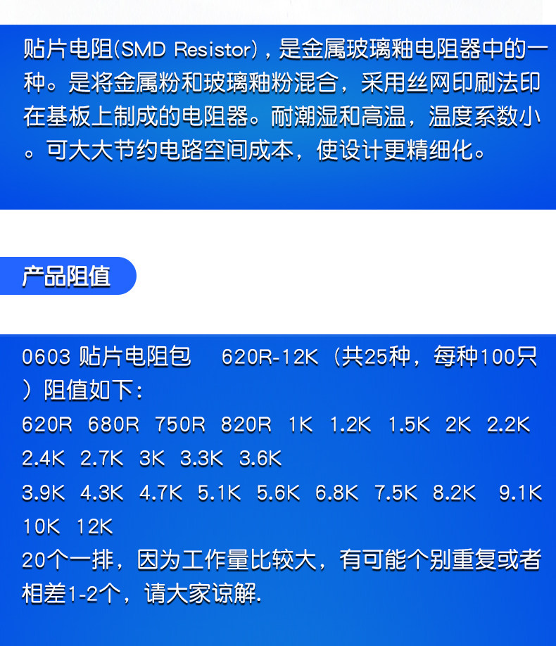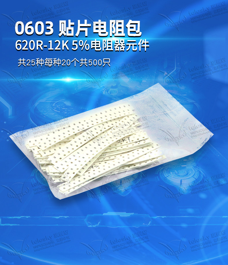 0603 Chip Resistor Package 620R-12K 5% Resistor Components, 25 Types, 20 Pieces Each, 500 Pieces Each