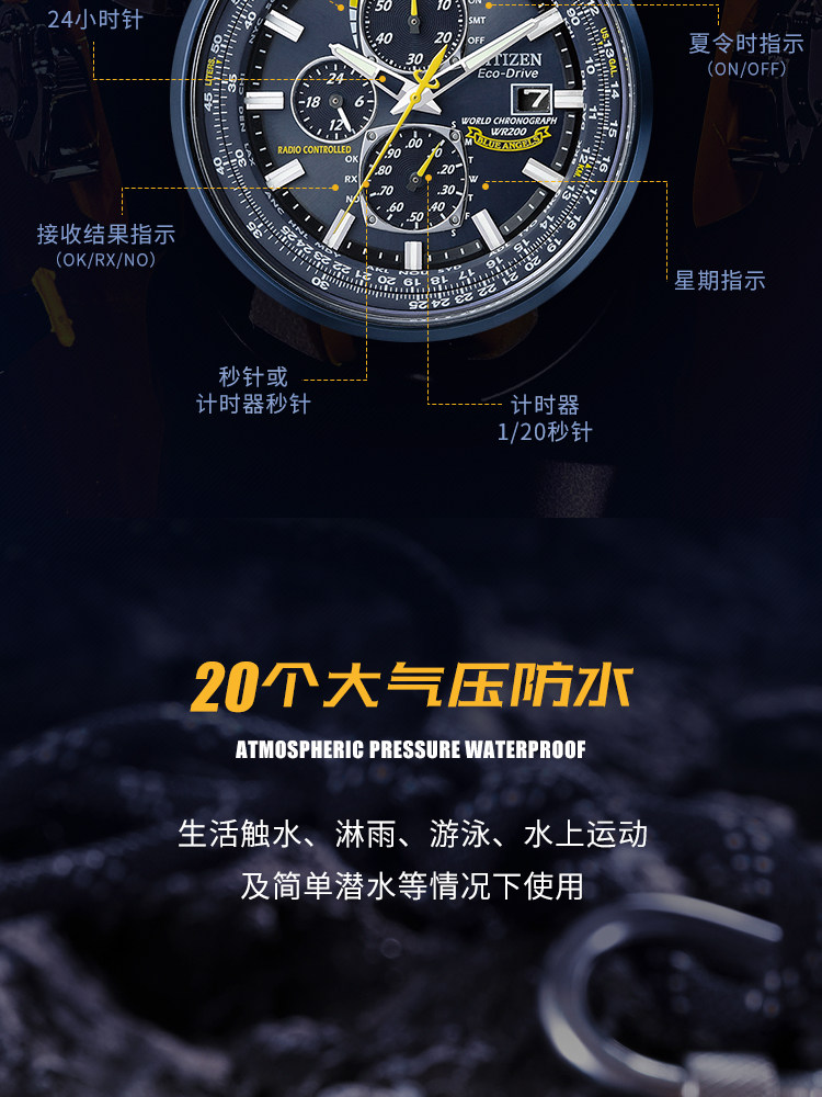 Citizen Flagship Store Radio-Controlled Luminous Skyhawk Blue Angel Kinetic Energy Business Watch for Men At8020