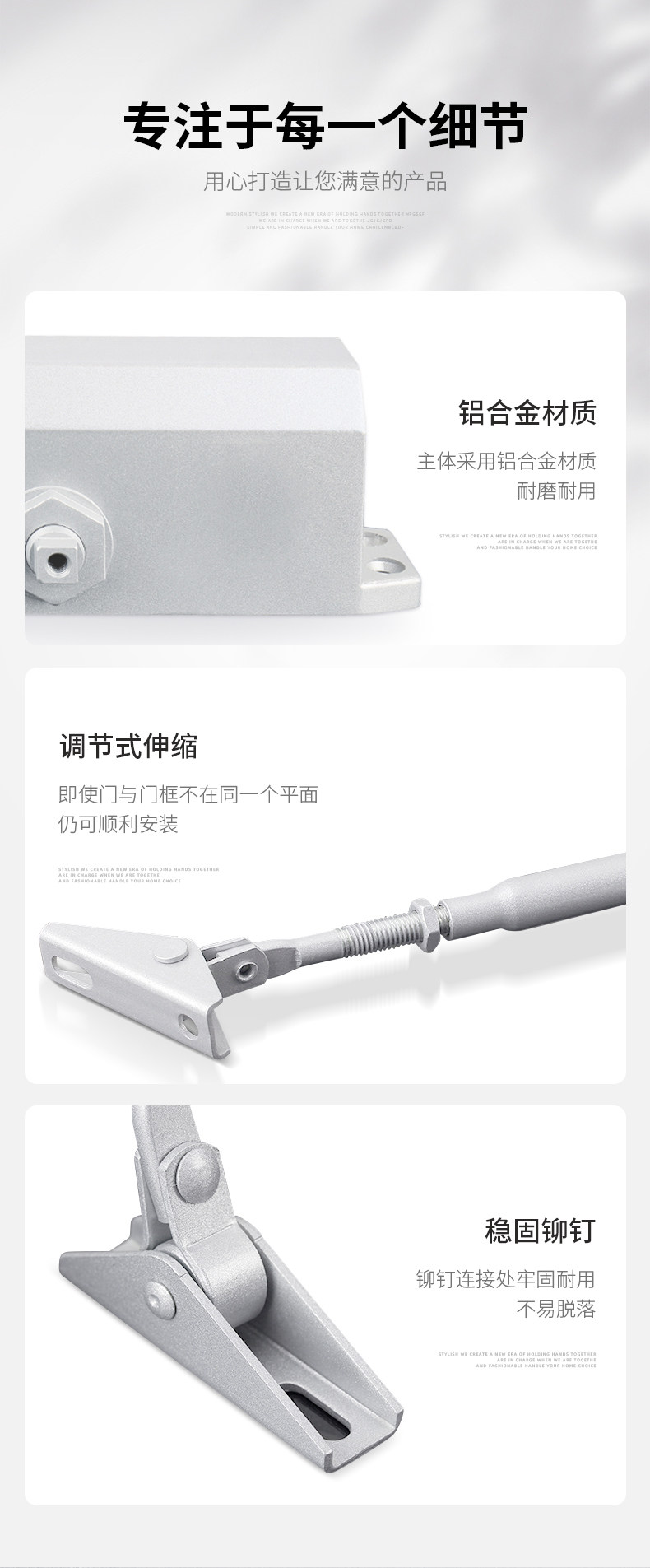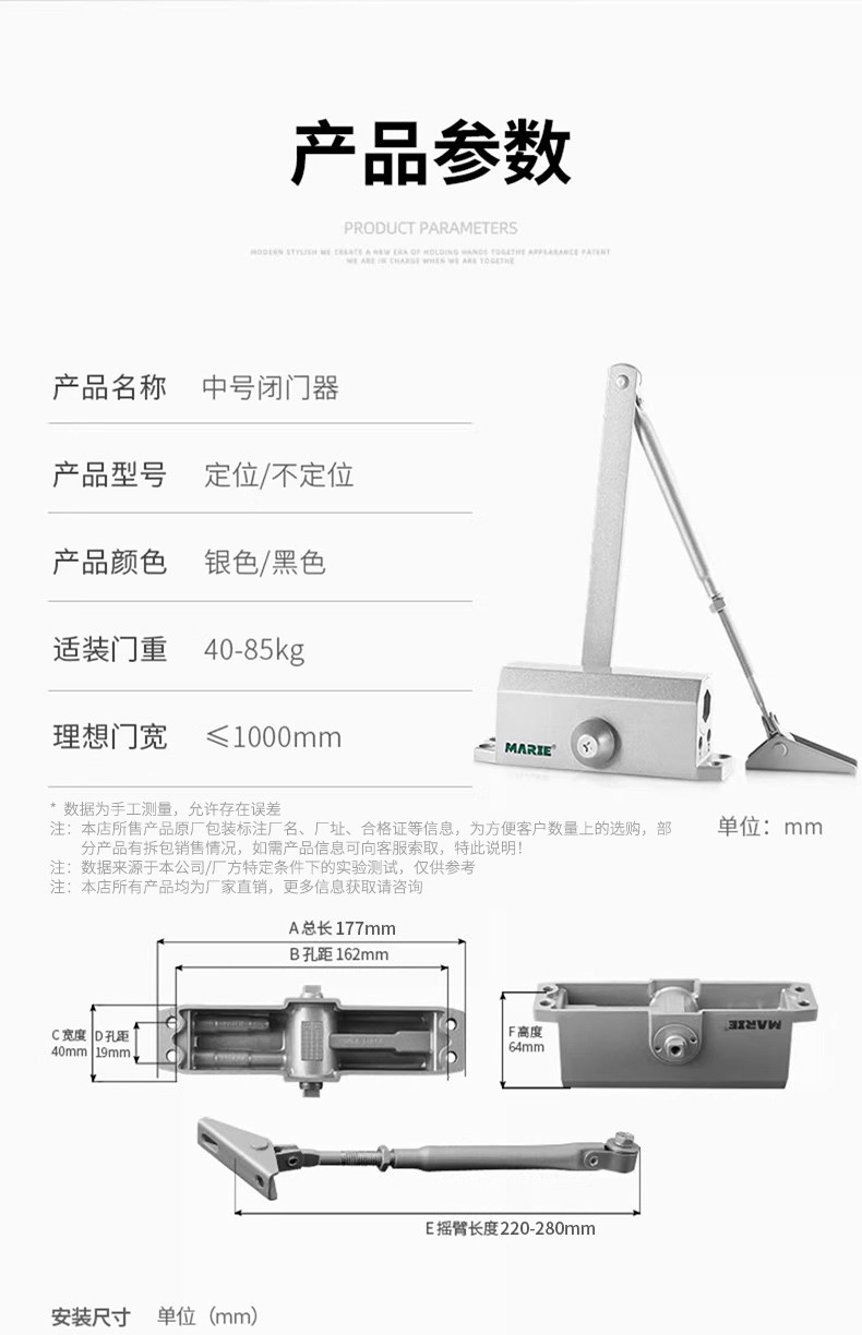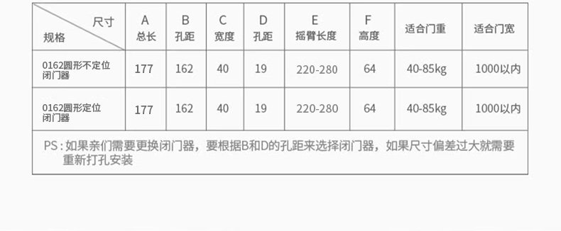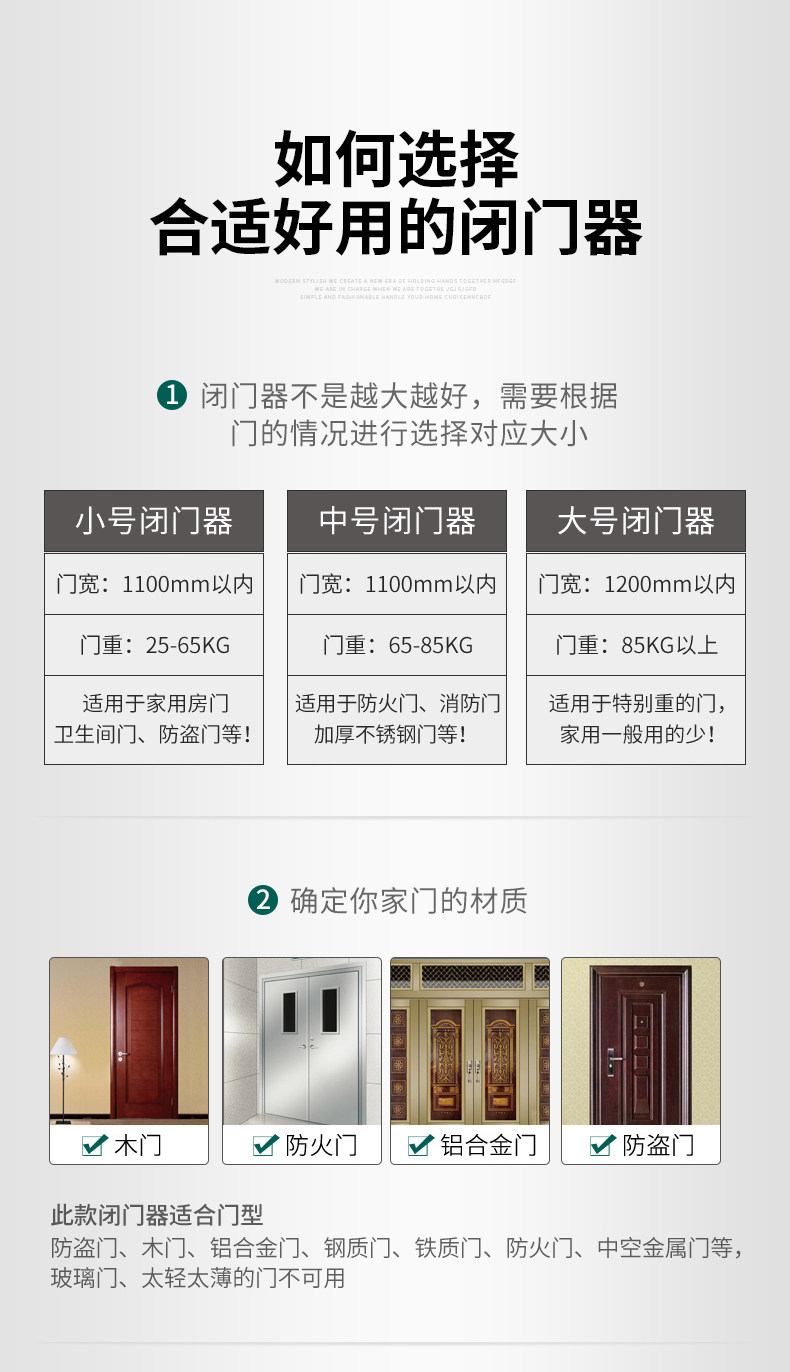 | Color Classification | [Thickened Medium Size]Suitable for Door Weights of 40-85kg. Silver Color. Non-Locking,[Thickened Medium Size]Suitable for Door Weights of 40-85kg, Silver, Fixed Position Model,[New Medium Size]Suitable for Door Weights of 40-85kg. Matte Black. Non-Locking,[Extra Thick & Oversized]Suitable for Door Weight 25-80kg, Silver, No Positioning,[Extra Thick & Oversized]Suitable for Door Weight 40-65kg, Black, No Positioning,[Commercial Extra Large]Suitable for Door Weight 60-85kg, Silver, No Positioning,[Commercial Extra Large]Suitable for Door Weight 80-120kg, Silver, No Positioning,[Commercial Extra Large]Suitable for Door Weight 80-120kg, Black, No Positioning,[Commercial Extra Large]Suitable for Door Weight 100-150kg, Silver, No Positioning,[New Large Size]Suitable for Door Weights of 60-85kg, Silver, Fixed Position Model |
