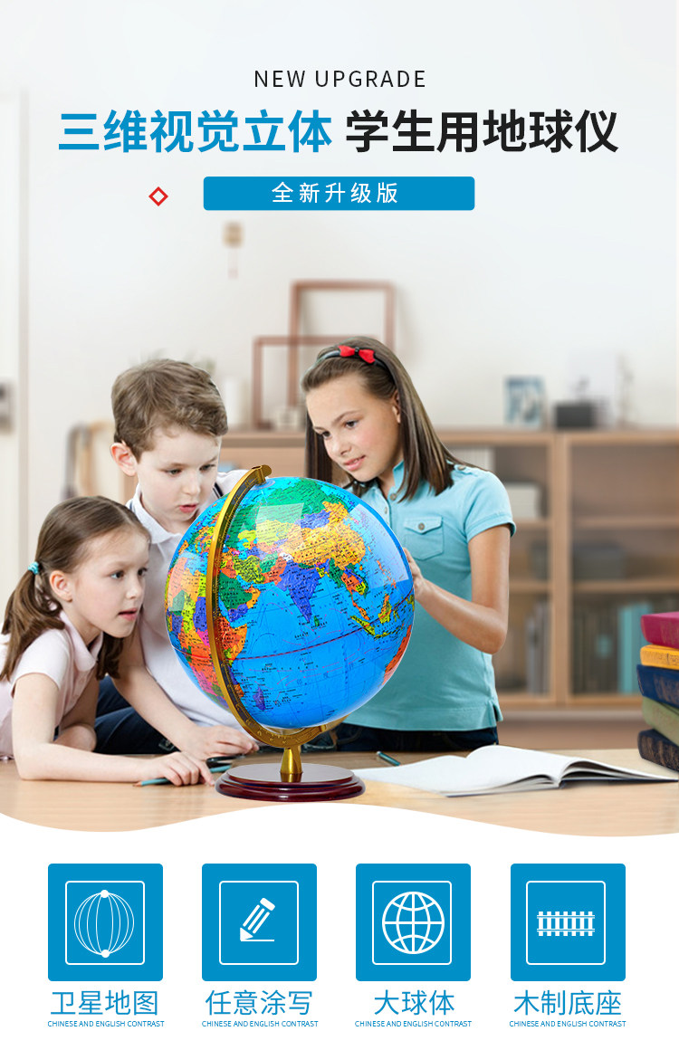Children's Educational Globe Ornament, Large Size for Students, 3D Floating Model for Middle School Students, Official Flagship Store, 25cm Teaching Version, World Model, Living Room Study Decoration, Office Luminous Desk Lamp