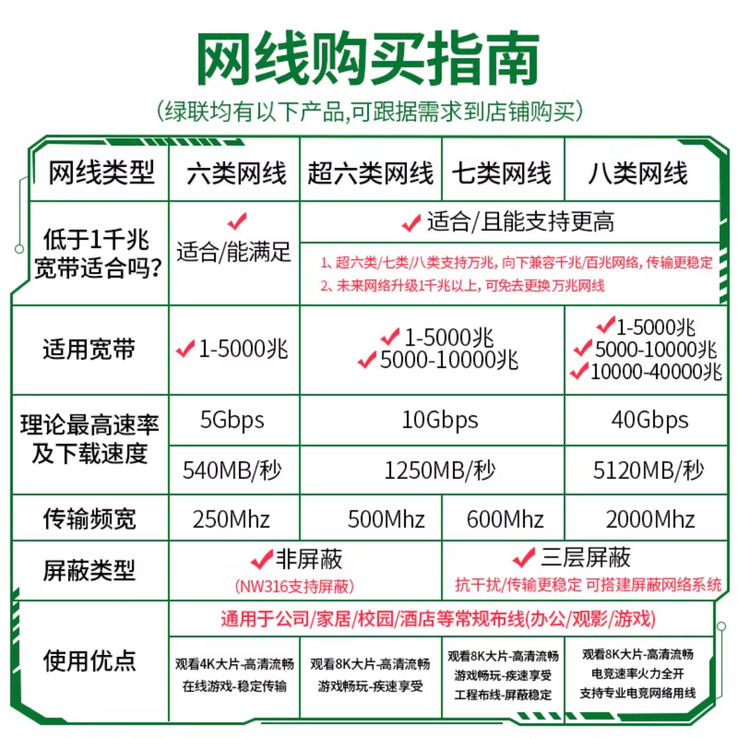 Green Internet Cable for Home Use, Category 6, Gigabit, 100m, Pre-Assembled for Router, Computer, Broadband Network Cable, Super Category 6, 5/ 10m
