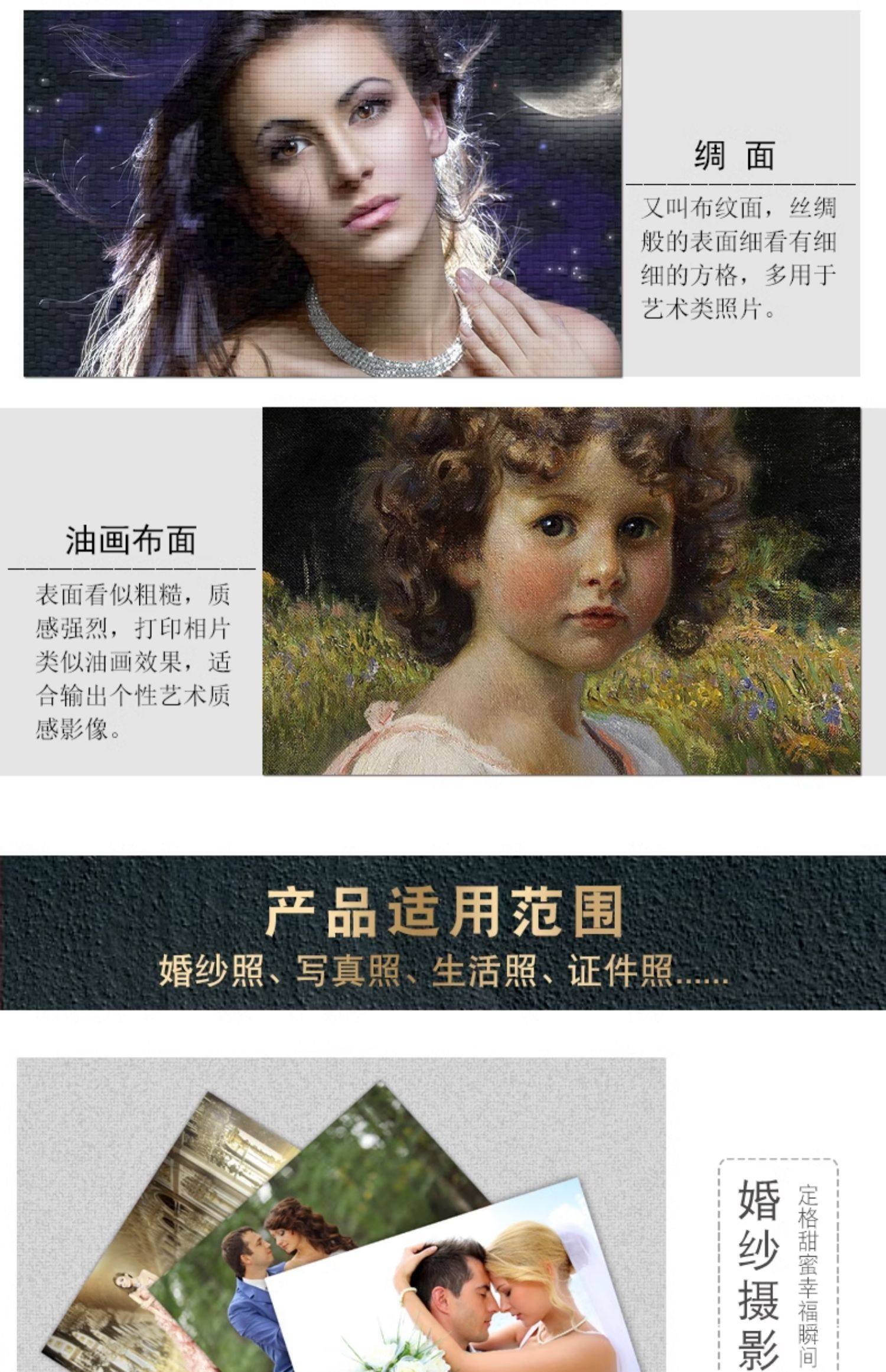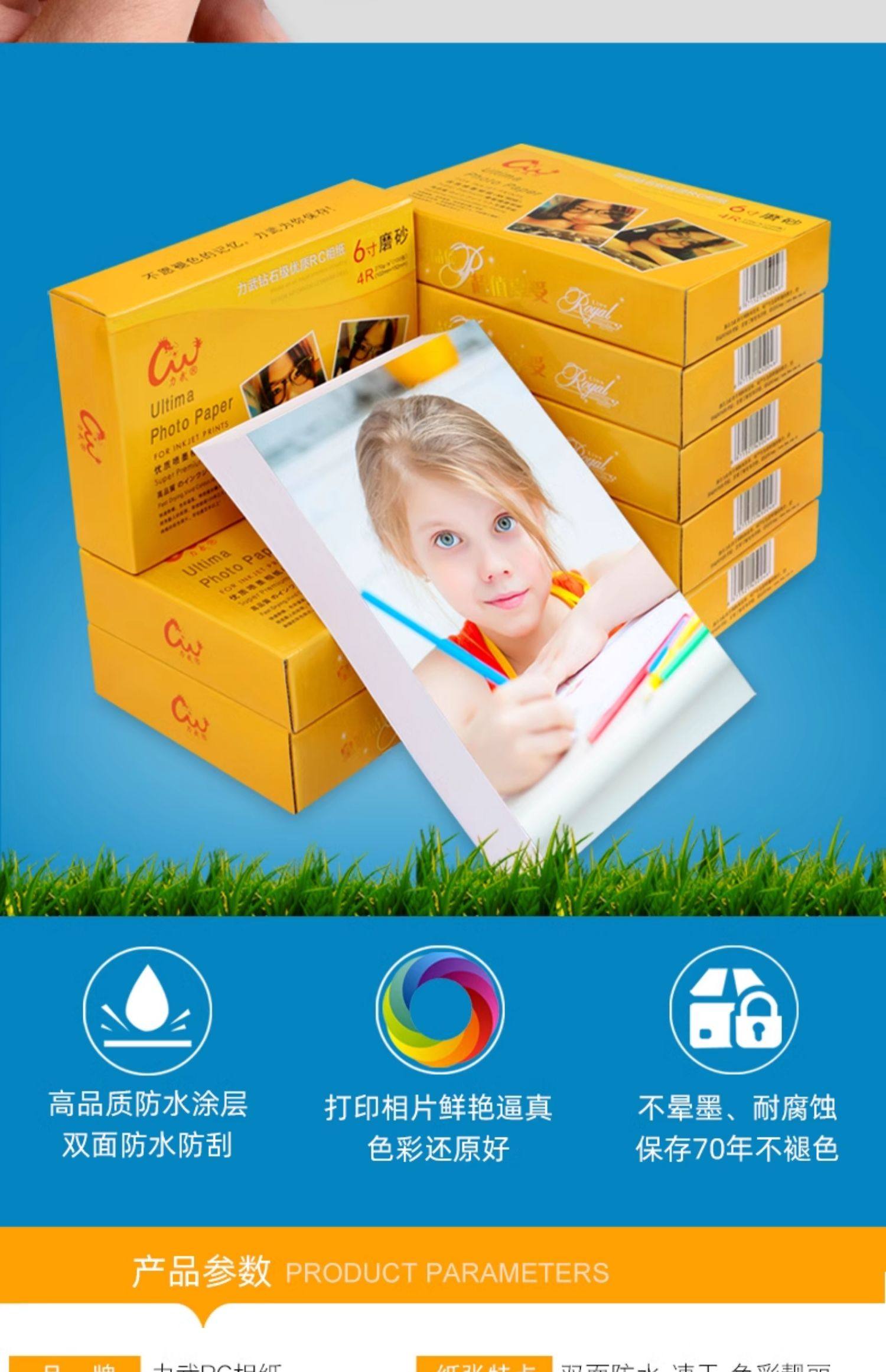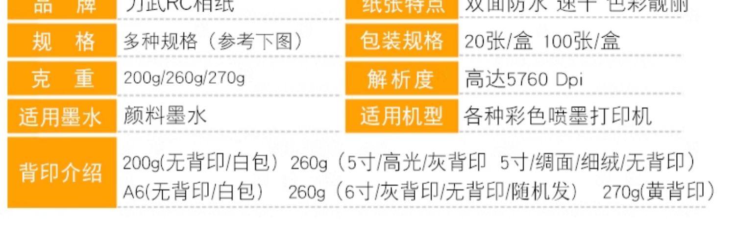| Color Classification | 5inch 240g Rc Glossy[White Bag] 200 Sheets,5inch 260g Rc Glossy/High Gloss 200 Sheets,5inch 260g Rc Glossy[White Bag Without Back Printing]200 Sheets,5inch 270g Rc Glossy (High White Type) 200 Sheets,5inch 270g Rc Fine Velvet/Matte 200 Sheets,5inch 270g Rc Suede[White Bag Without Back Printing]200 Sheets,5inch 270g Rc Matte/Rough Velvet 200 Sheets,7inch 260g Rc Glossy/High Gloss 100 Sheets,7inch 280g Rc Glossy/High Gloss 100 Sheets,7inch 270g Rc Fine Velvet/Matte 100 Sheets,7inch 270g Rc Suede[White Bag Without Back Printing]100 Sheets,7inch 270g Rc Matte/Rough Velvet 100 Sheets,7inch 270g Rc Frosted[White Bag Without Back Printing]100 Sheets |