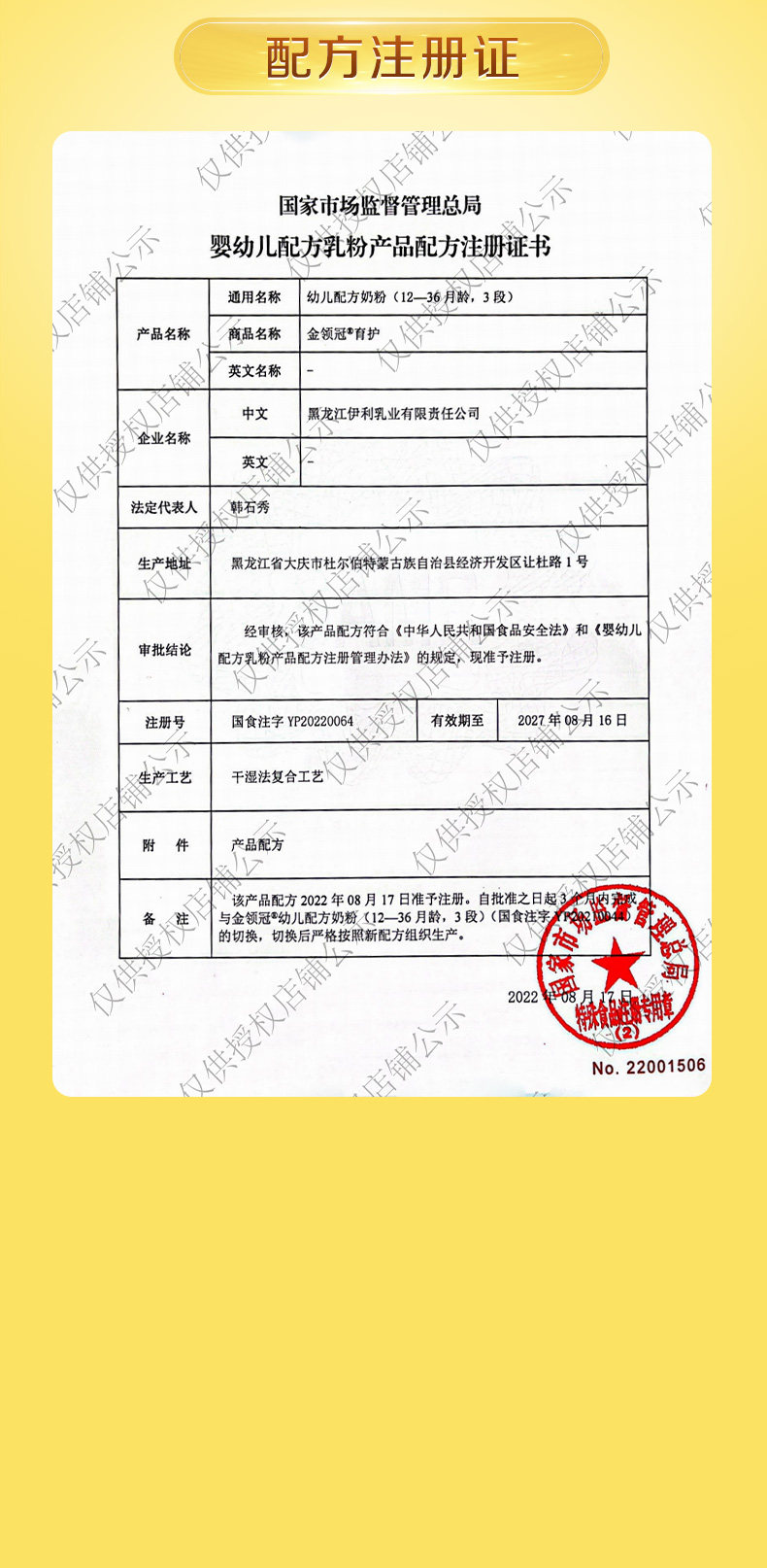 | Formula Registration Number | National Food Injection Word Yp20220064 |