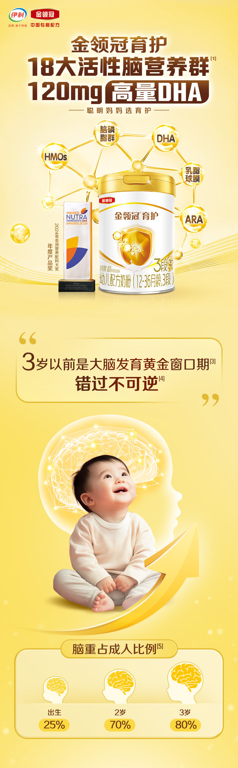 [18 Major Active Brain-Nourishing Nutrients] Yili Jinlingguan Care 3-Stage Infant Formula Milk Powder for 1-3 Years Old Children
