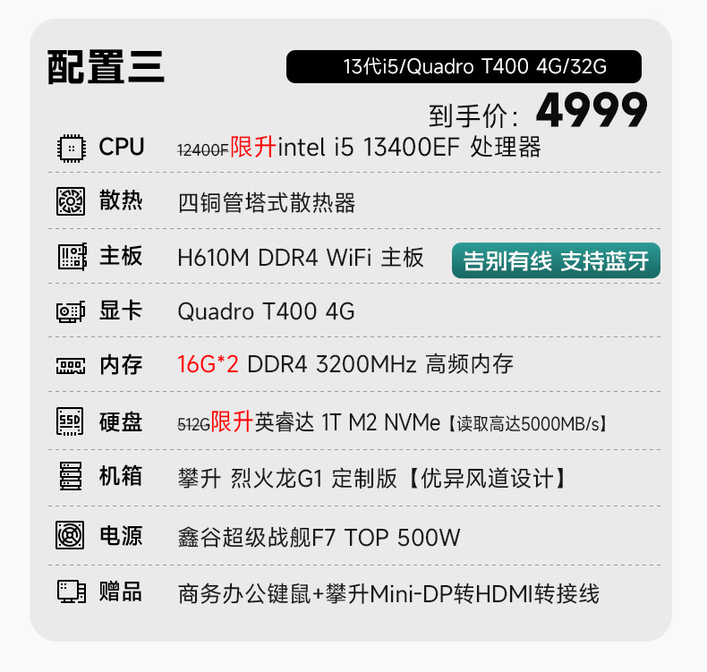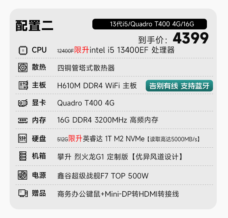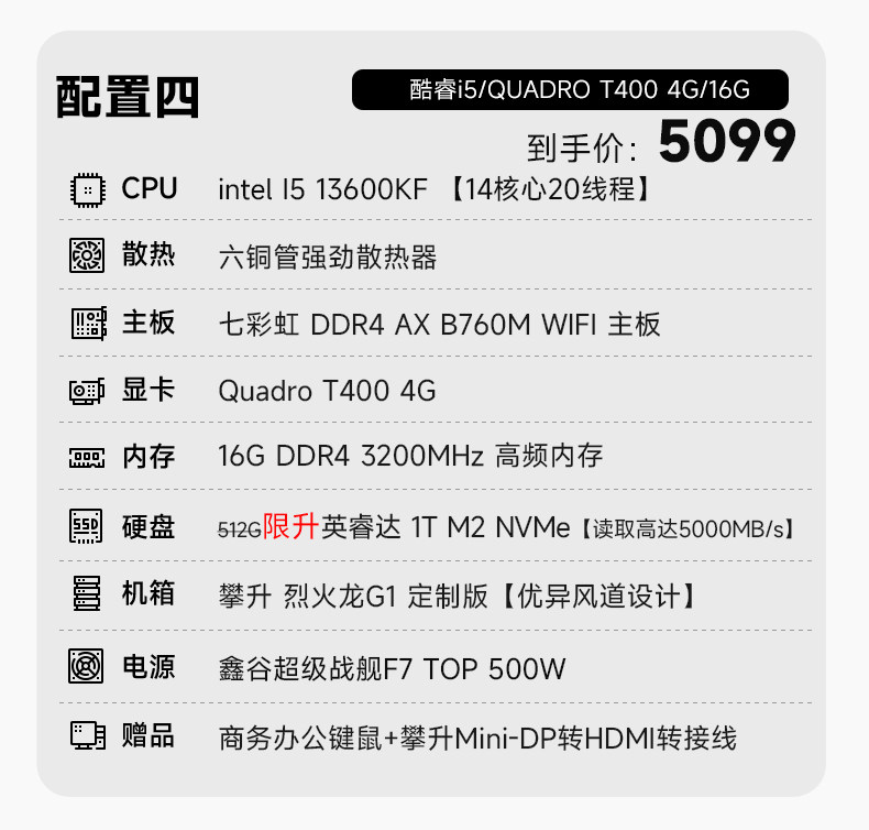 [National Support] Climb I5 Designer 13400Ef/14600Kf Graphic Design Drawing DIY Computer T400 Assembled Machine 3D Modeling Computer Video Editing T1000 Desktop Computer