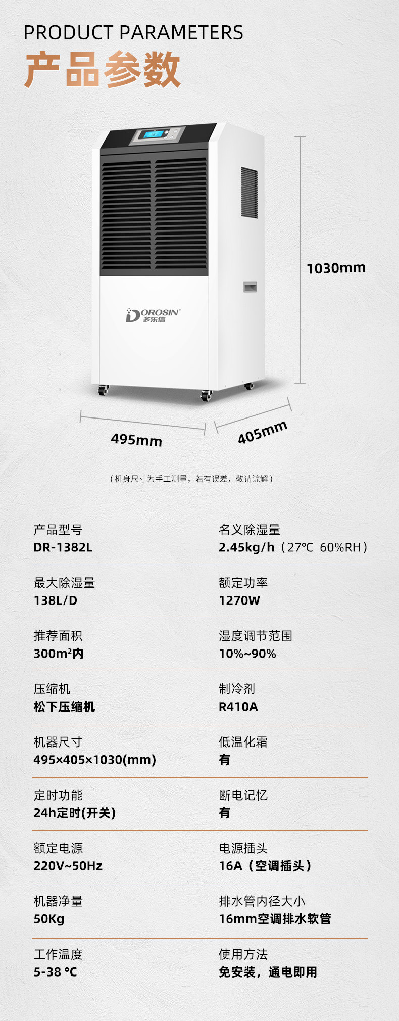 Dolexin Dehumidifier Industrial High-Power Dehumidifier Warehouse Workshop Villa Basement Moisture Absorber Dr-1382L