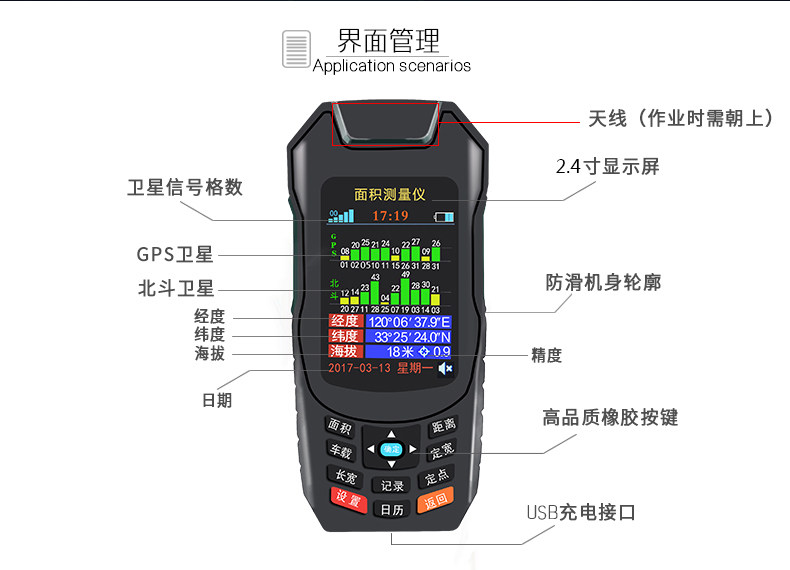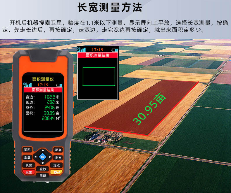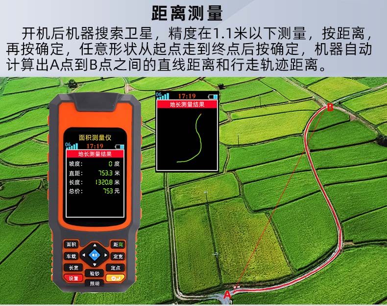 High-Precision Handheld Gps Land Area Measuring Instrument for Measuring Acres, Suitable for Use with Harvesters and Vehicles