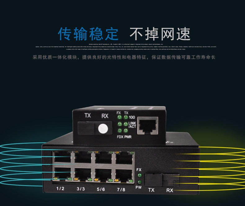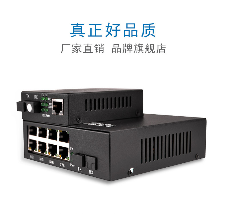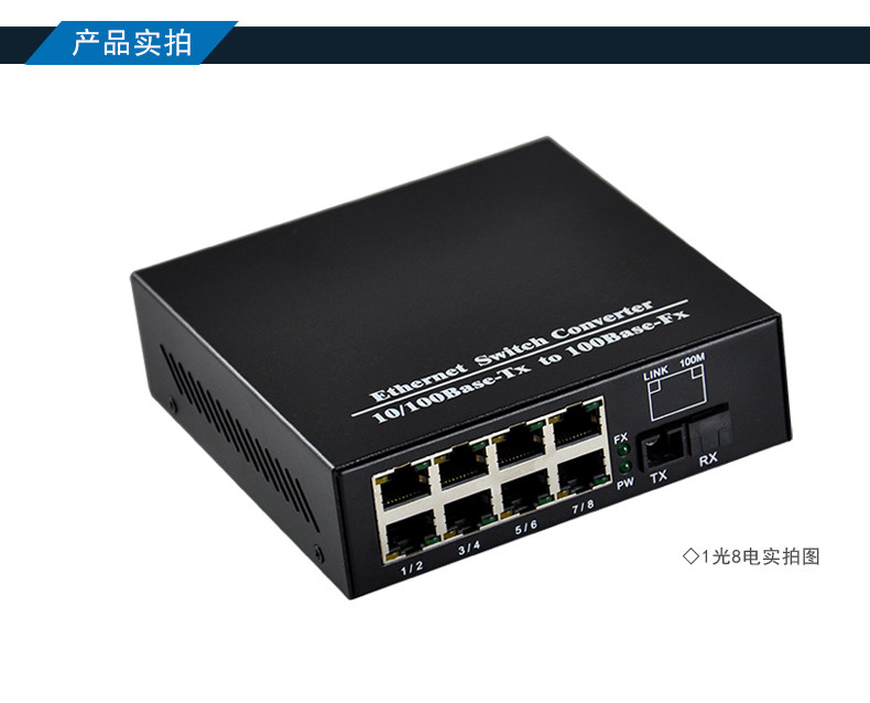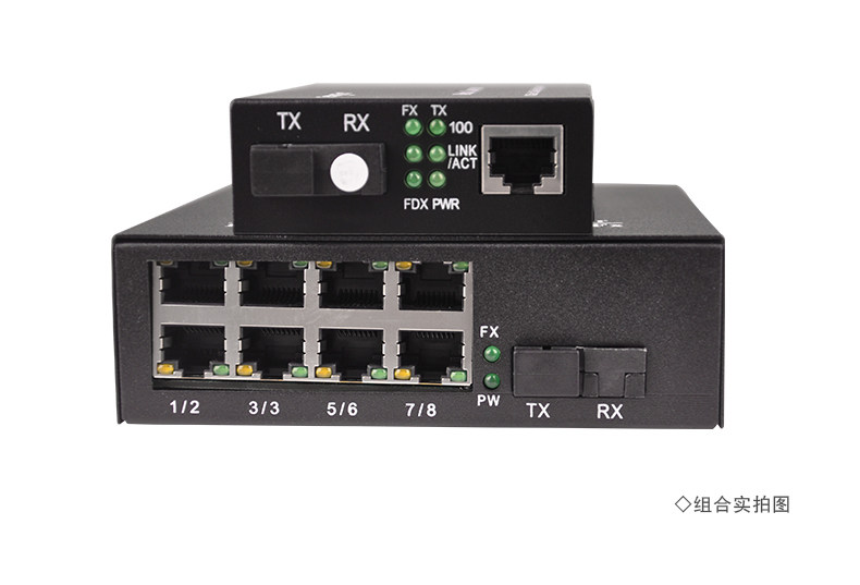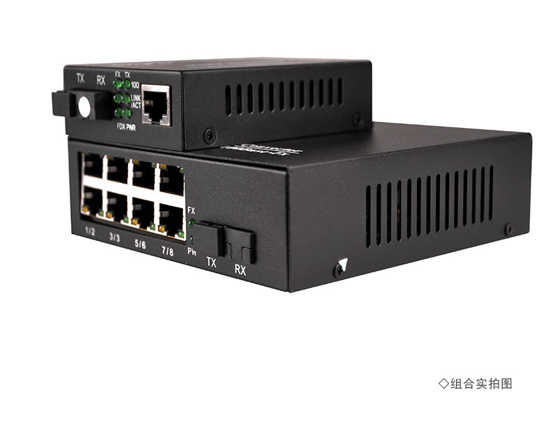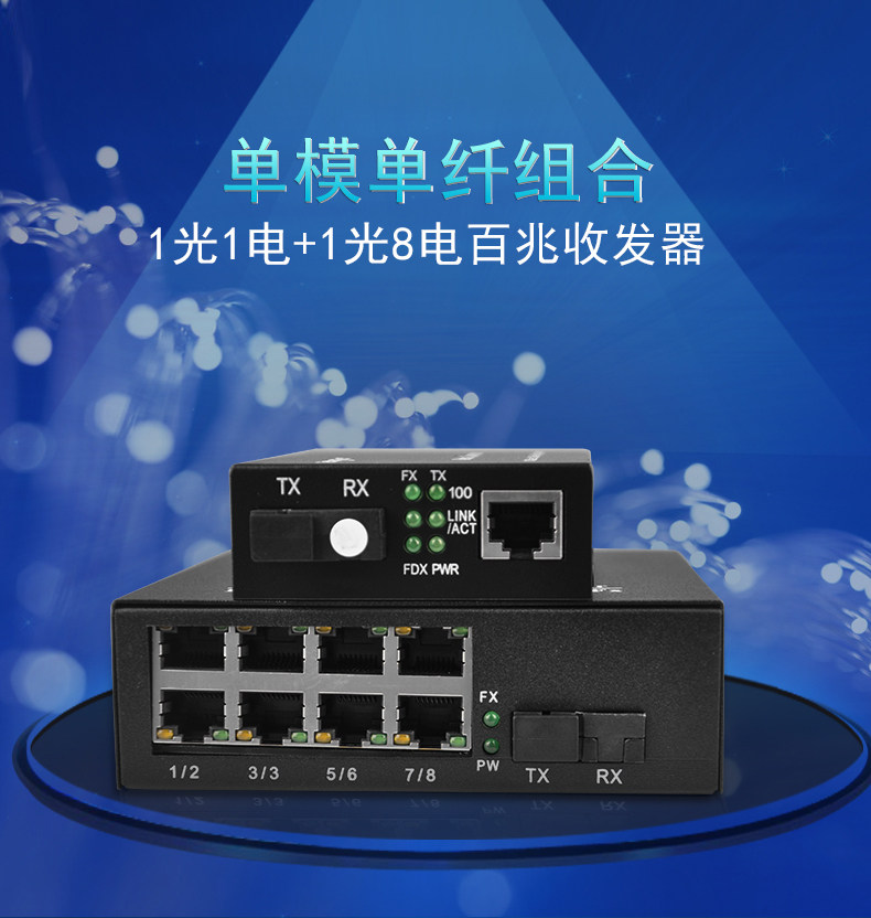100m Single-Mode Single-Fiber One-Optical-One-Electrical + 1-Optical-8-Electrical Fiber Optic Transceiver Photoelectric Converter Digital Monitoring Combo