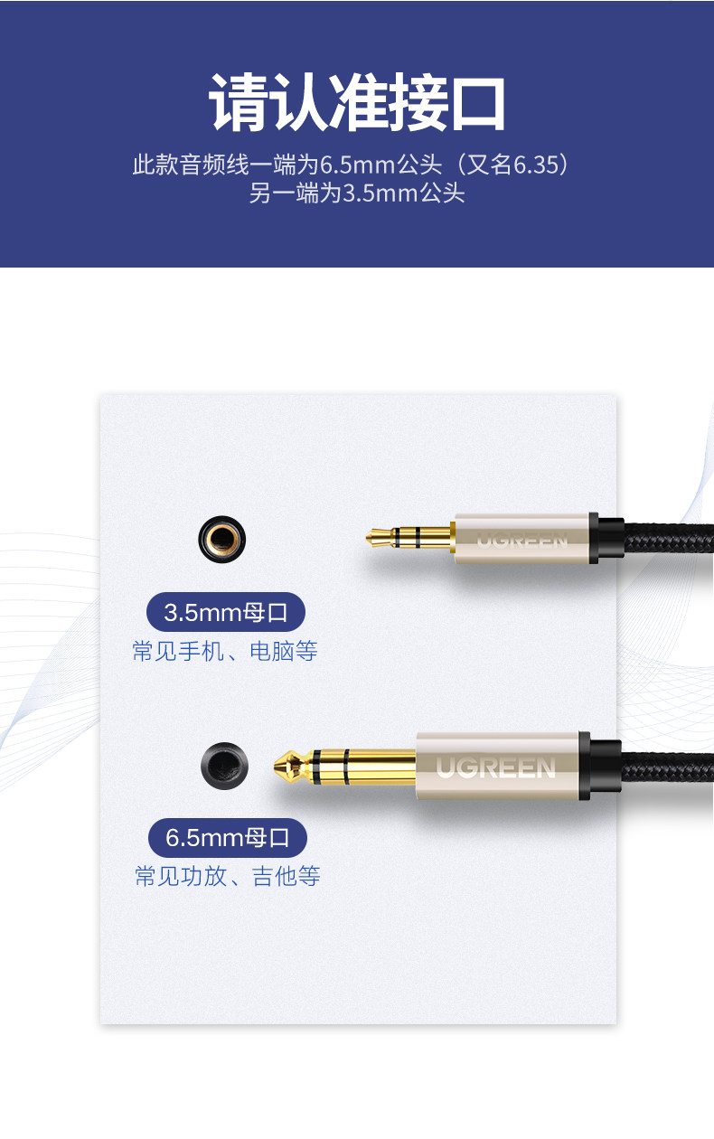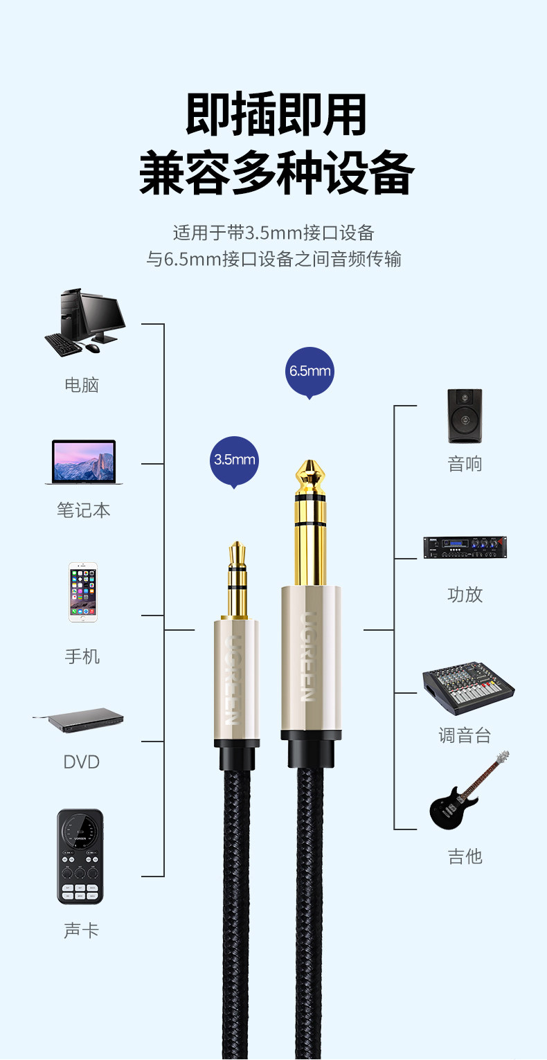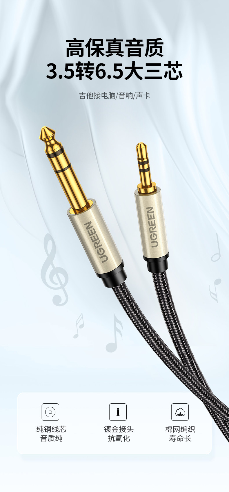 Greenlink 3.5 to 6.5 Audio Cable Connects Mobile Phones, Computers, Speakers, Electric Guitars, Digital Pianos, 6.35mm Adapter