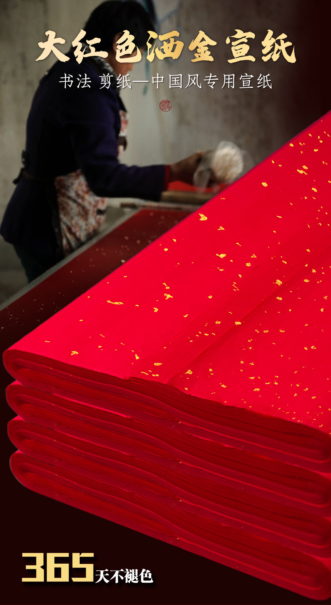 Cao Yige 133.2cm / 199.8cm / 266.4cm Handmade Large Red Gold-Sprinkled Xuan Paper Calligraphy Creation Paper Anhui Jingxian Raw Xuan Paper Double-Sided Red Chinese Painting Landscape Flower and Bird Calligraphy Creation Paper