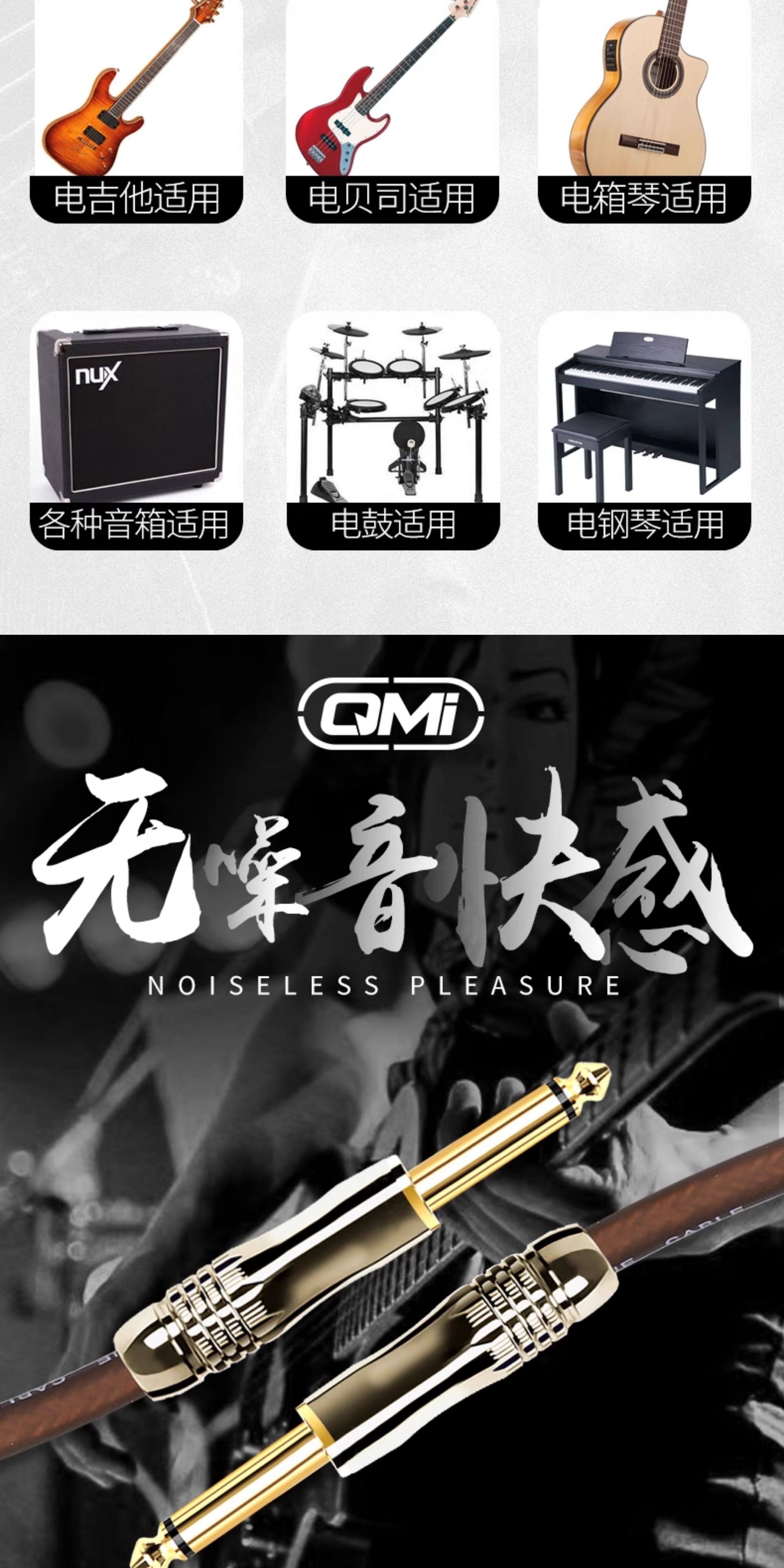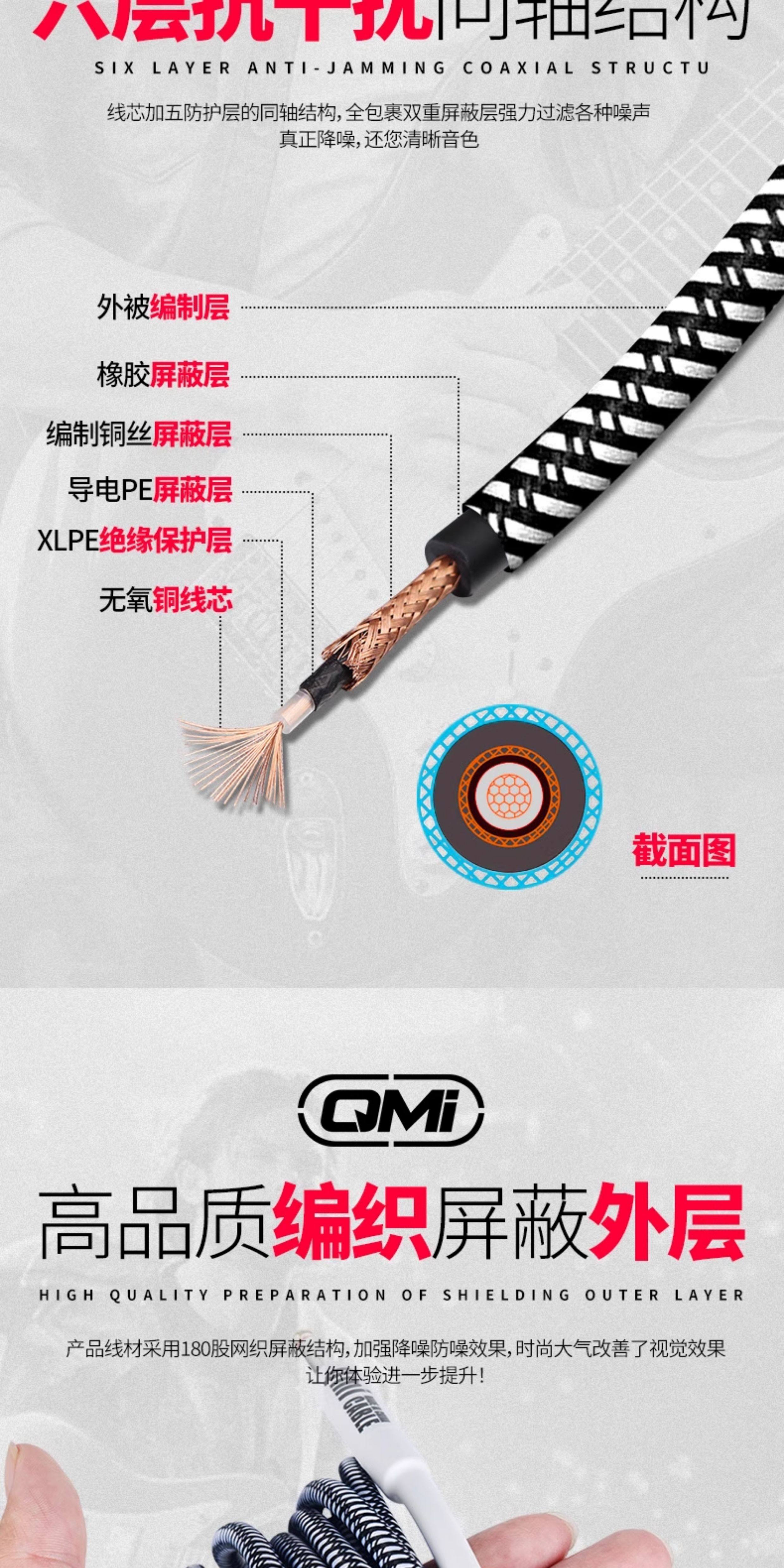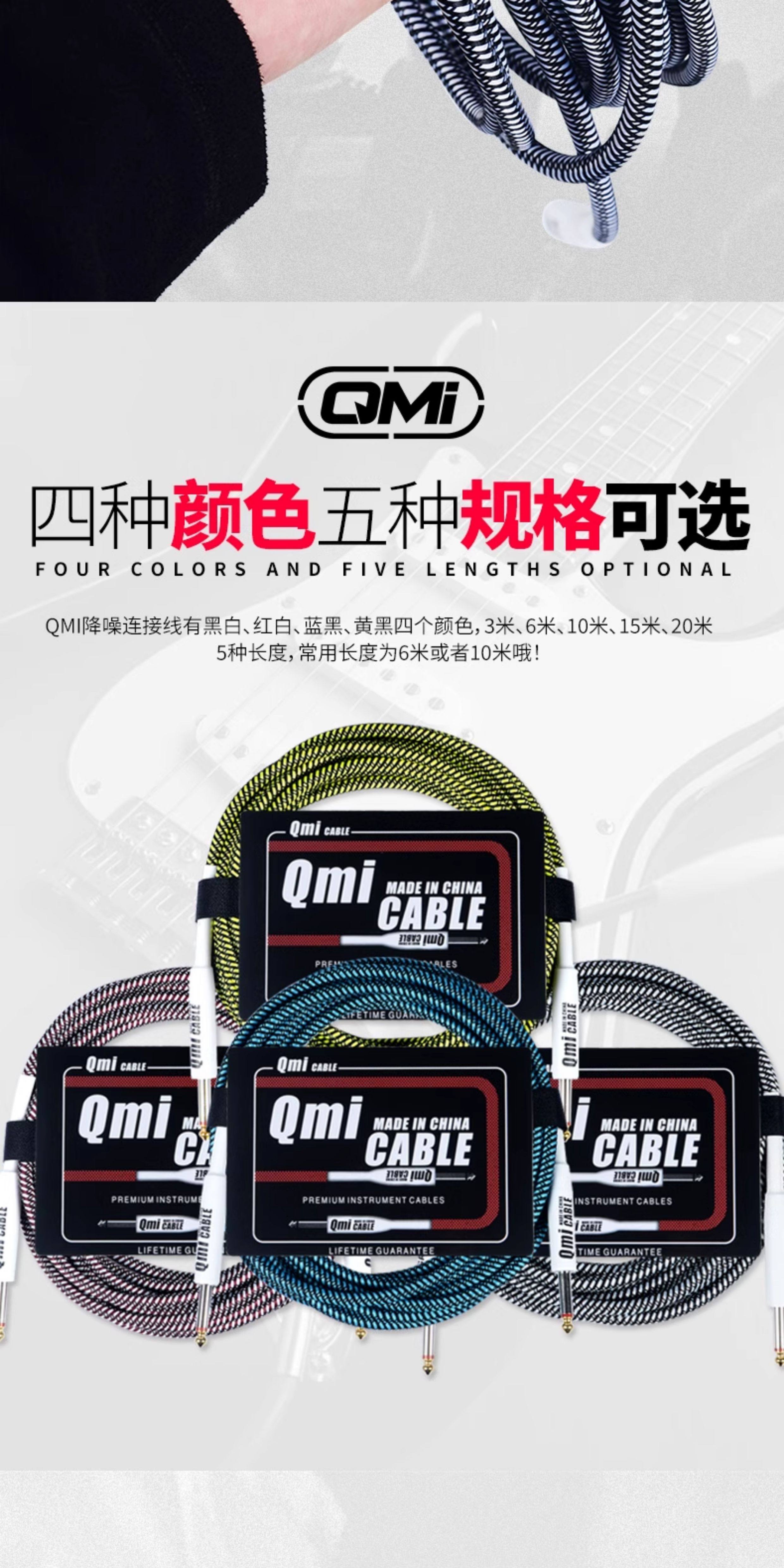 Qmi Electric Guitar Cable 2 3 6 10 20m Audio Cable Speaker Bass Electric Box Wooden Instrument Noise Reduction Sound System