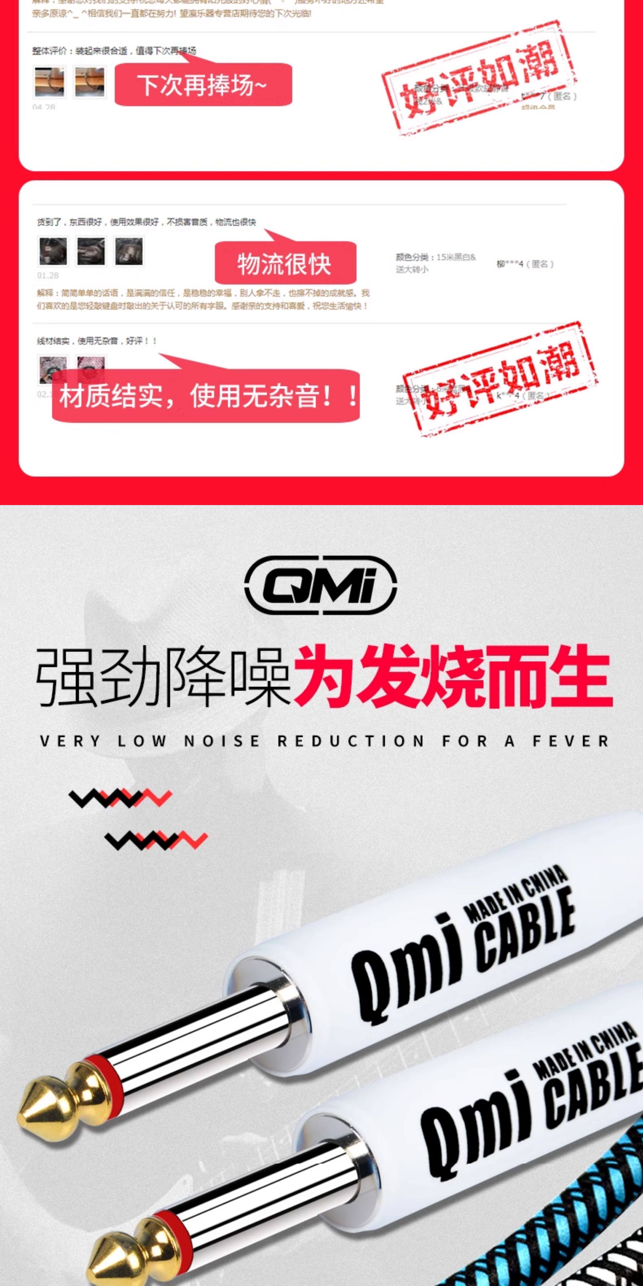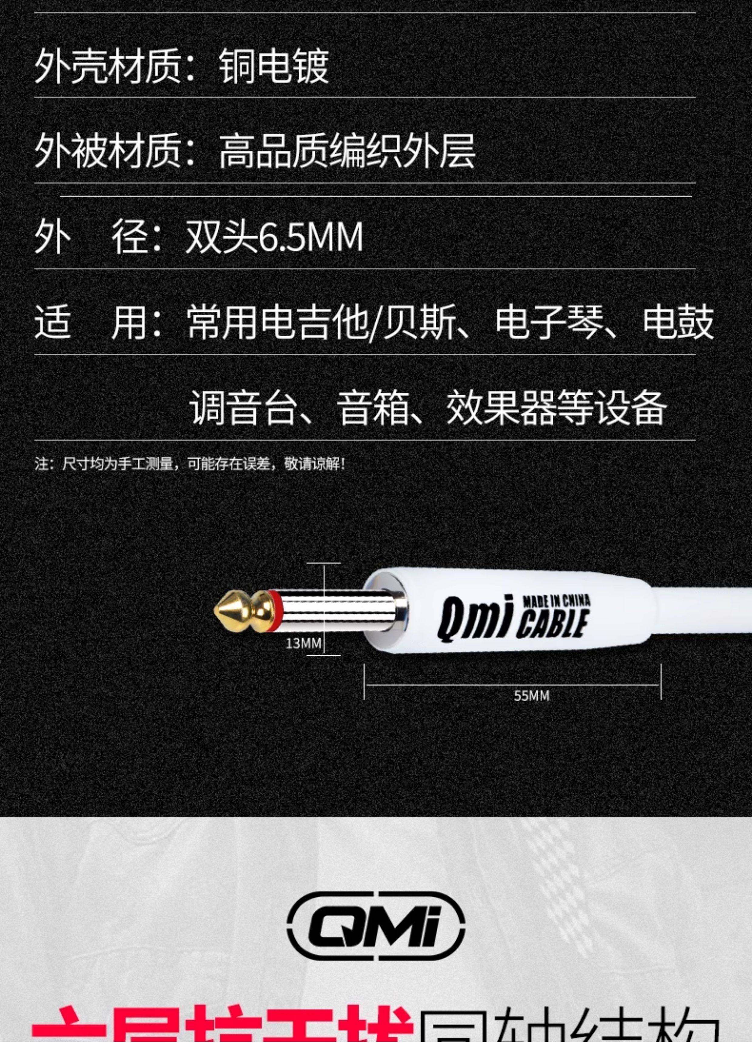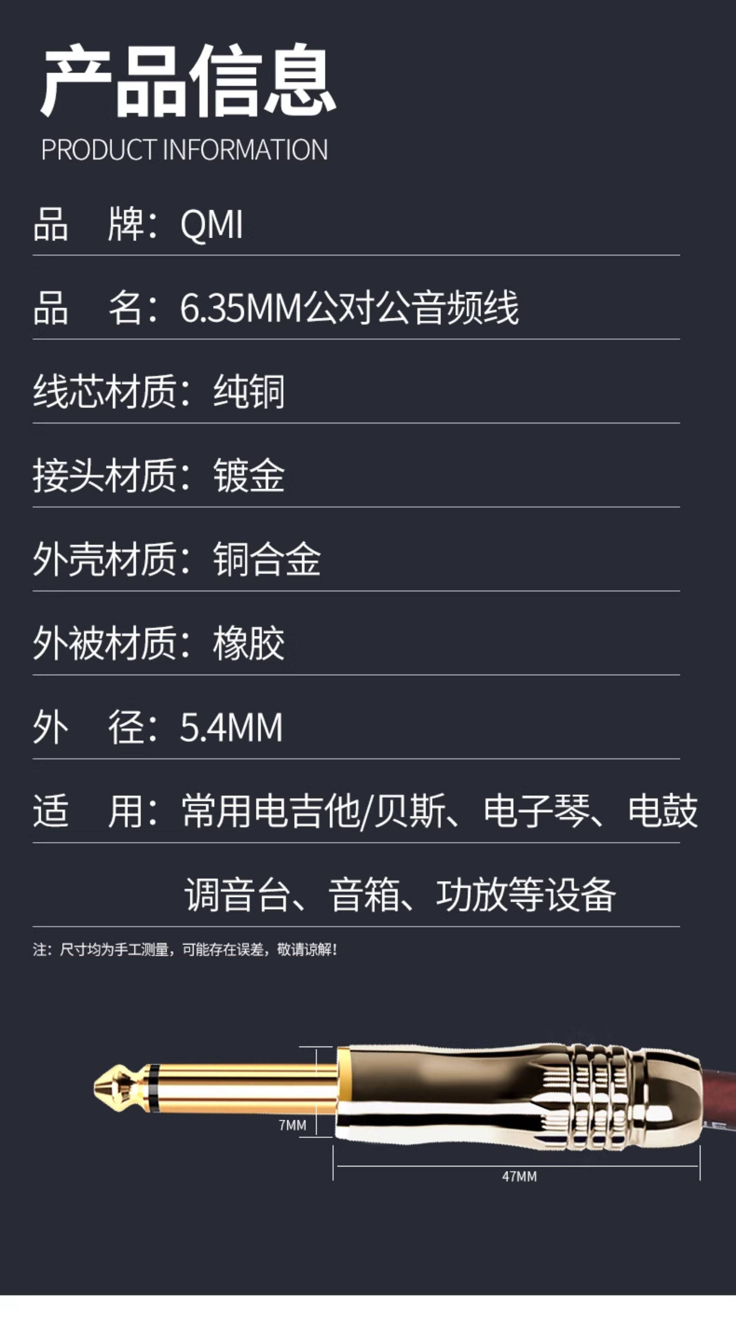 Qmi Electric Guitar Cable 2 3 6 10 20m Audio Cable Speaker Bass Electric Box Wooden Instrument Noise Reduction Sound System