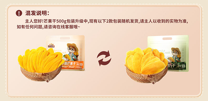 | Food Taste | Main Recommendation: [Thick-Cut Dried Mango 500g] Whole Piece! Eat More to Your Heart's Content,[Thick-Cut Dried Mango 500g*2 Bags] Full Pulp, Sweet and Sour and Flexible,New Product [Original Dried Mango 250g] Purely Natural, 0 Additions,【Hand-Shredded Mango Dried Fruit 250G】Premium Yu Jiao Mango,[Hand-Shredded Dried Mango 250g*2 Bags] Sourced from Southeast Asia,[Mass Pack 60Gx10 Bags] Single Bag Contains about 3-4 Pieces, First Choice for Stocking up,[Mass Pack 60Gx5 Bags] Each Bag Contains about 3-4 Pieces, and the Small Bag Is More Portable,[Sharing Pack 116Gx3 Bags] Dried Mangoes Lead Sales on the Entire Network,[Try the New Package 116g],【Hand-Shredded Mango Dried Fruit 500G】Small, Strip-Shaped Pieces! Easy to Eat. |