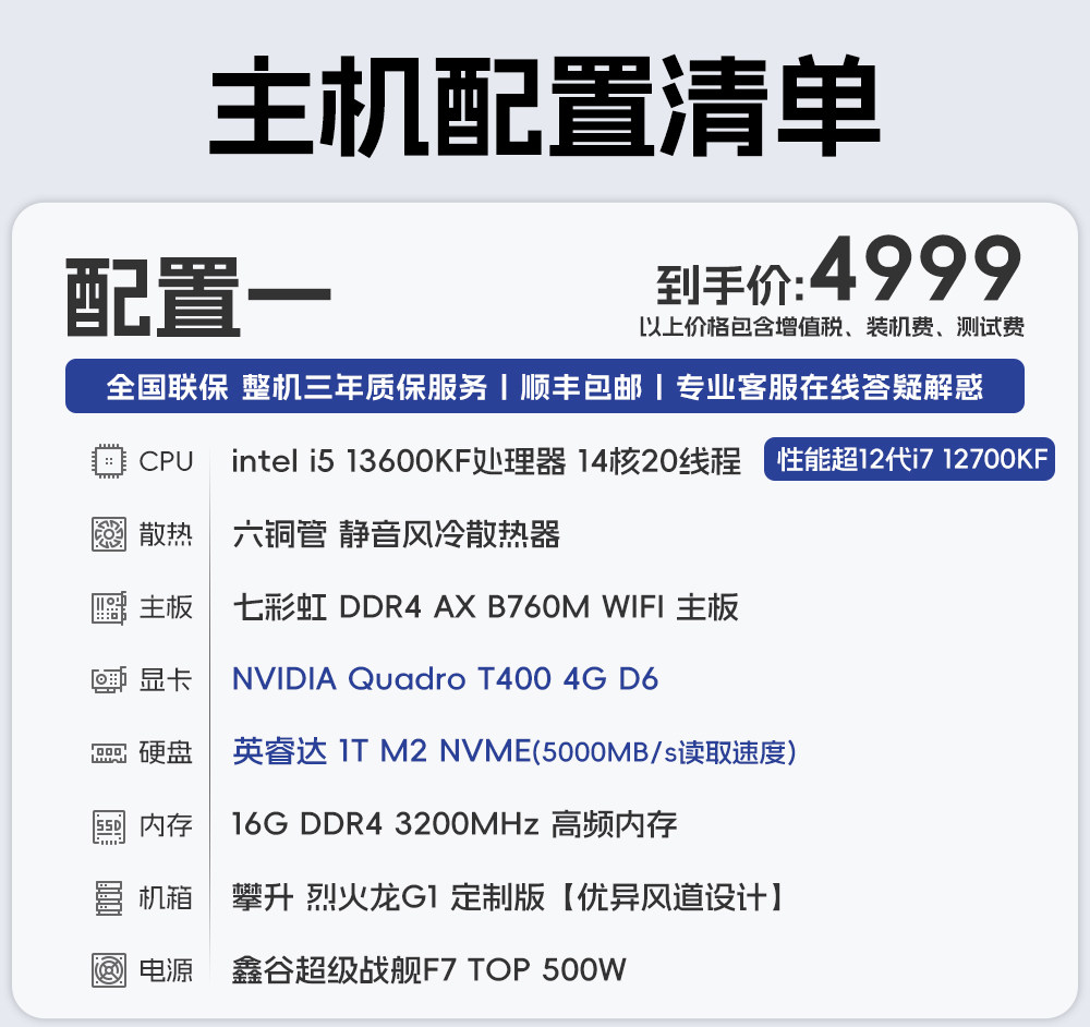 [National Support] Climb Designer Computer Host I5 13600Kf/14790F/T1000/Rtx5060/T400 Editing, Rendering, Graphic Design, Architecture, Office Desktop Computer Brand