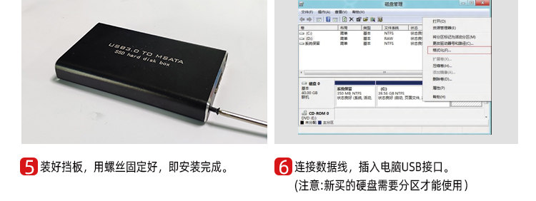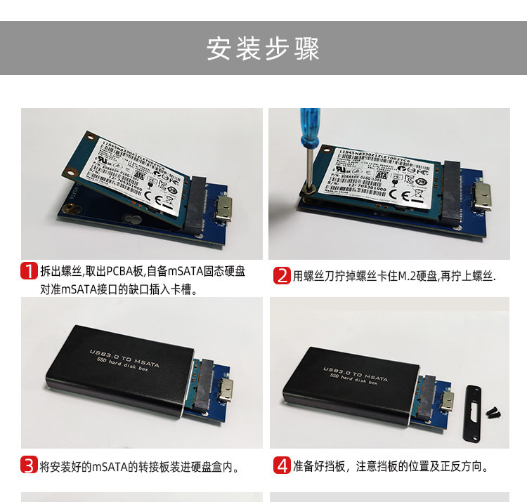 Msata Solid-State Mobile Hard Drive Box Msata to Usb3.0 External Computer Hard Drive Box External Read-Write Type-C