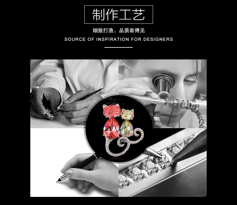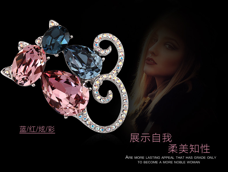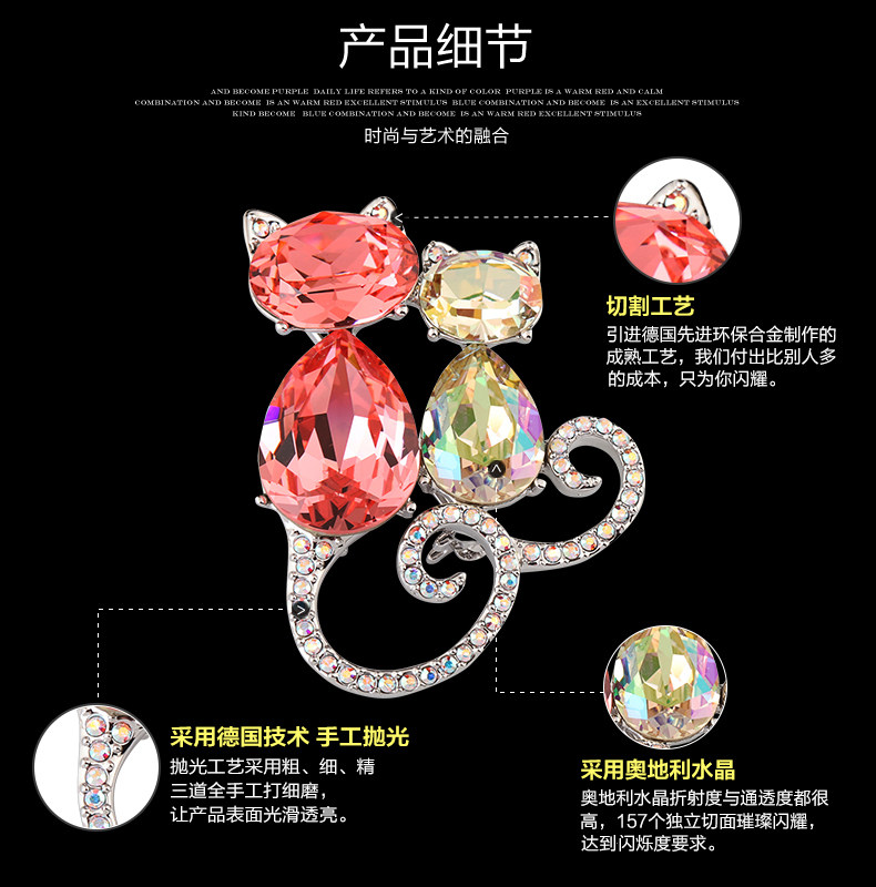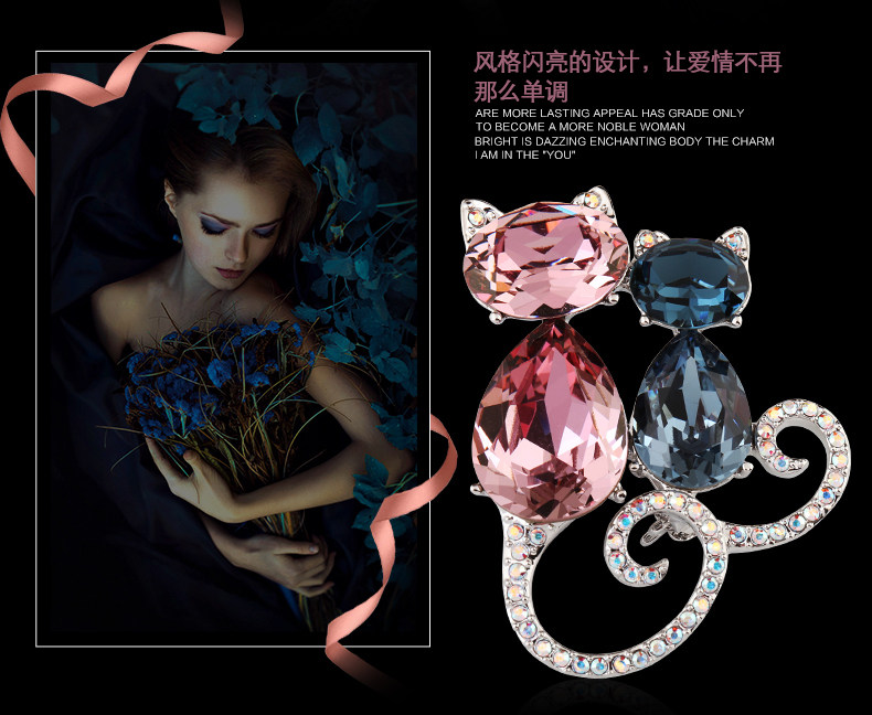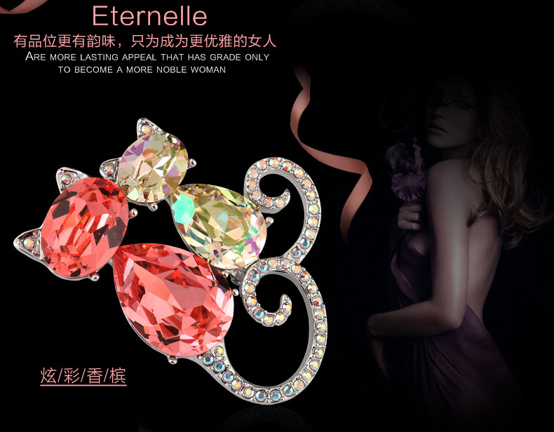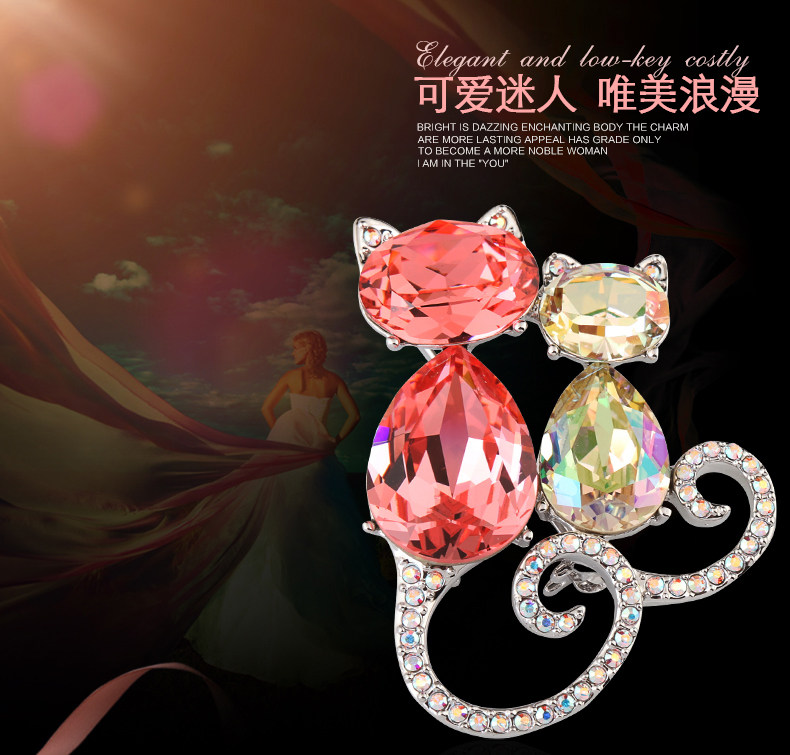 French Eternele Austrian Crystal Fashion Brooch Cat Brooch Accessory Sweet Pin Scarf Buckle