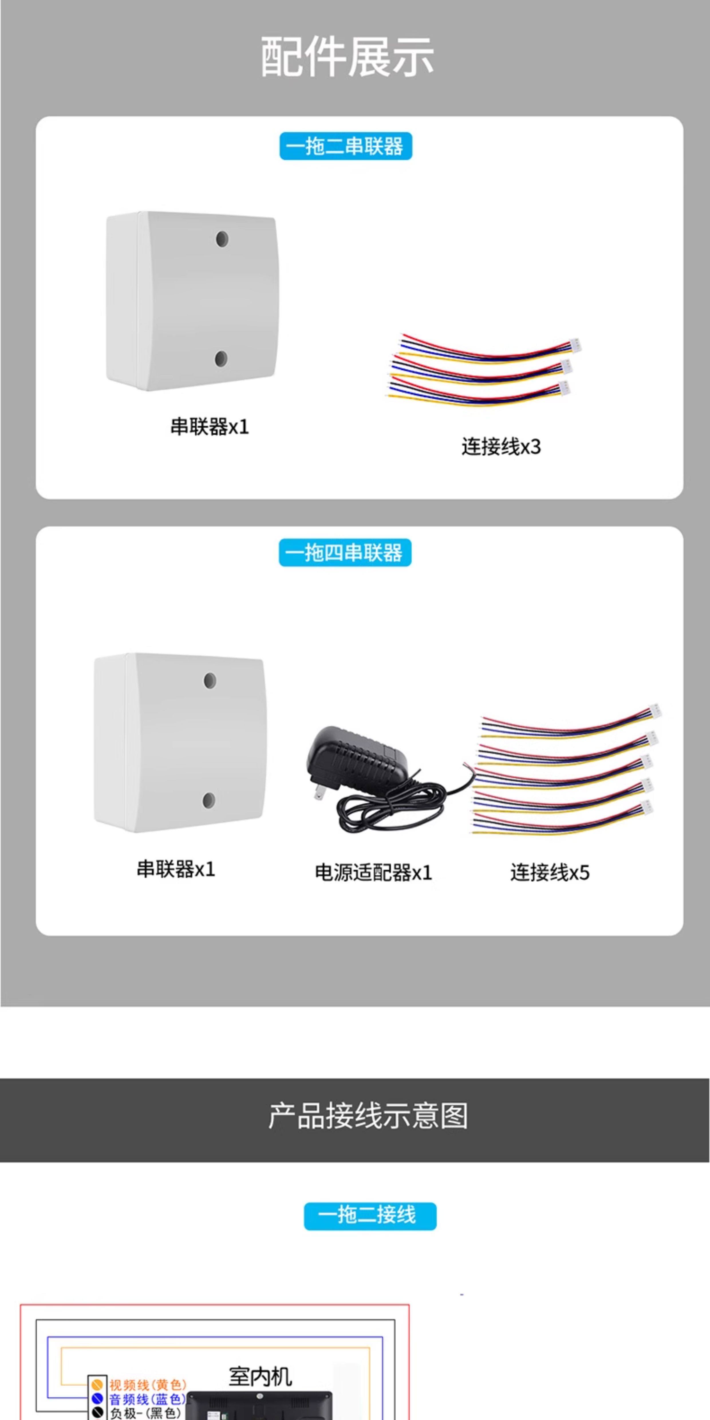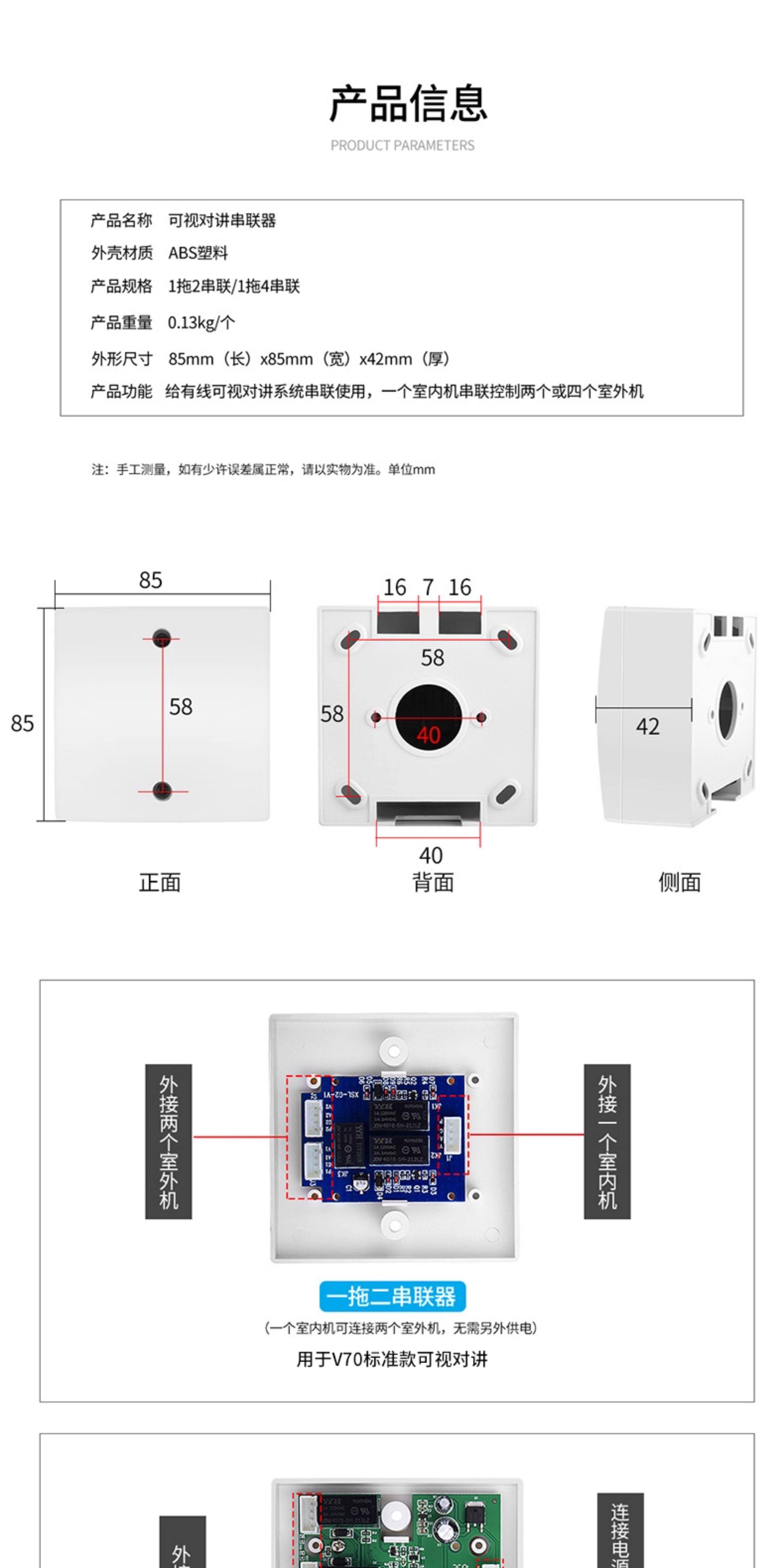 Kob Brand Video Intercom Connector Indoor Unit Can Connect Multiple Outdoor Units in Series, Intercom Connector, Series Connector