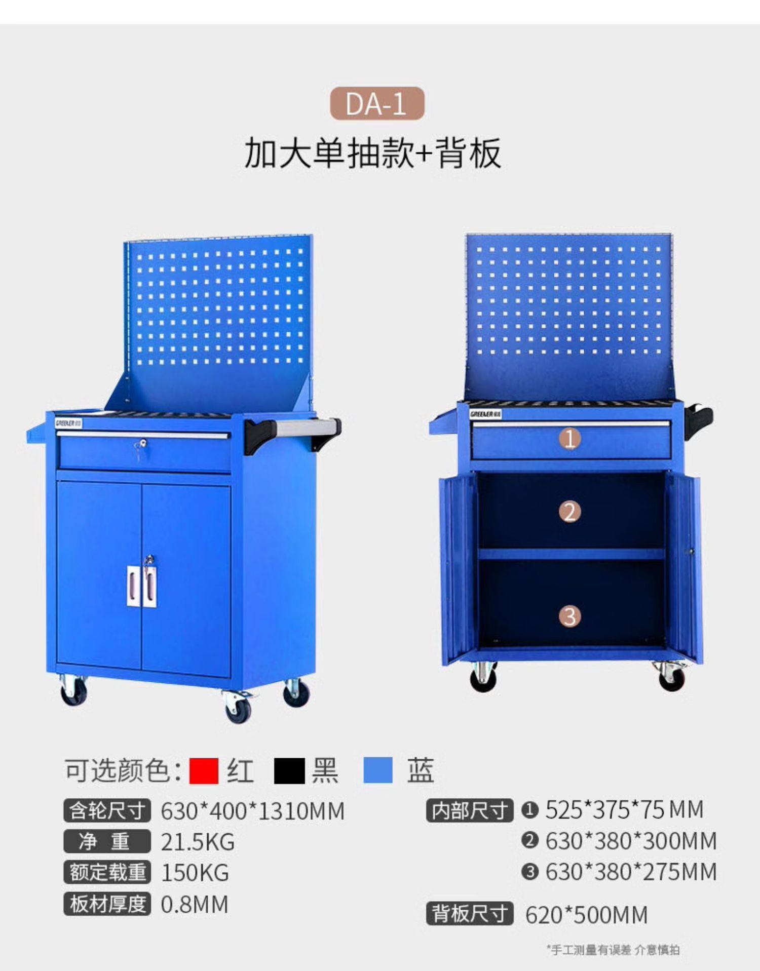 | Color Classification | High-End Elite Blue - Three-Tier Cabinet Tool Cart,High-End Elite Blue - Single Drawer, Oversized Tool Cart,Flagship Elite Blue - Extra Thick 1.0mm Single Draw Tool Cart,High-End Elite Blue - Double Drawer, Oversized Tool Cart,[90% of Factories Choose]Single Drawer Tool Cart-With Back Panel,Flagship Elite Blue Heavy-Duty Single Drawer Tool Cart - with Back Panel,High-End Elite Blue Double Drawer Tool Cart - with Back Panel,Flagship Thickened Blue-Double Drawer Tool Cabinet[Foot Style],Flagship Thickened Blue - Double Drawer Tool Cart[Caster Model],High-End Blue-Double Drawer Tool Cabinet[Foot Style],High-End Navy Blue Tool Cabinet (with Casters),Flagship Thickened Gray - Tool Cabinet[Foot Style],Flagship Thickened Grey - Tool Cart[Caster Model],Back Panel Cabinet Blue,Back Panel Cabinet Red,Back Panel Cabinet Black,Back Panel Single Draw Red,Back Panel Single Draw Black,Back Panel Single Draw Green and Black,Double Red on the Back Panel,Double-Sided Black Back Panel,Back Panel Double Draw Black and Green,Double Draw - Black,Double Draw-Green and Black,Double Draw - Red,Single Draw-Black,Single Draw-Black and Green,Single Draw-Red,Cabinet Style-Red,Cabinet Model-Black,Side-Mounted Model-Cabinet Model Blue,Side-Mounted Model-Cabinet Model Red,Side-Mounted - Cabinet Style Black,Side Hanging Model-Single Draw Blue,Side Hanging Style-Single Draw Red,Side-Mounted Model-Single Draw Black,Side Hanging Style-Single Draw Green,Side Hanging Model-Double Draw Blue,Side Hanging Style-Double Red,Side Mount - Double Drawer Black,Side Hanging Model-Double Draw Green |
