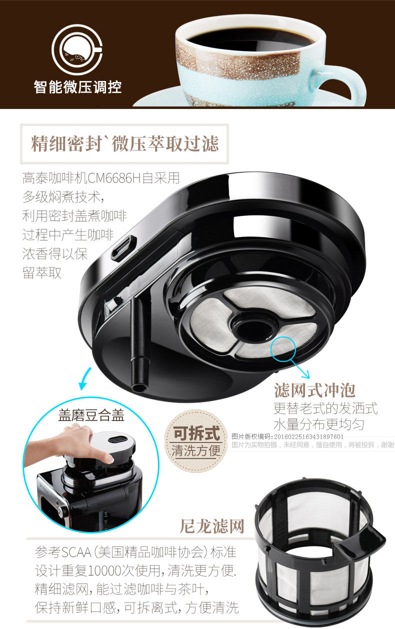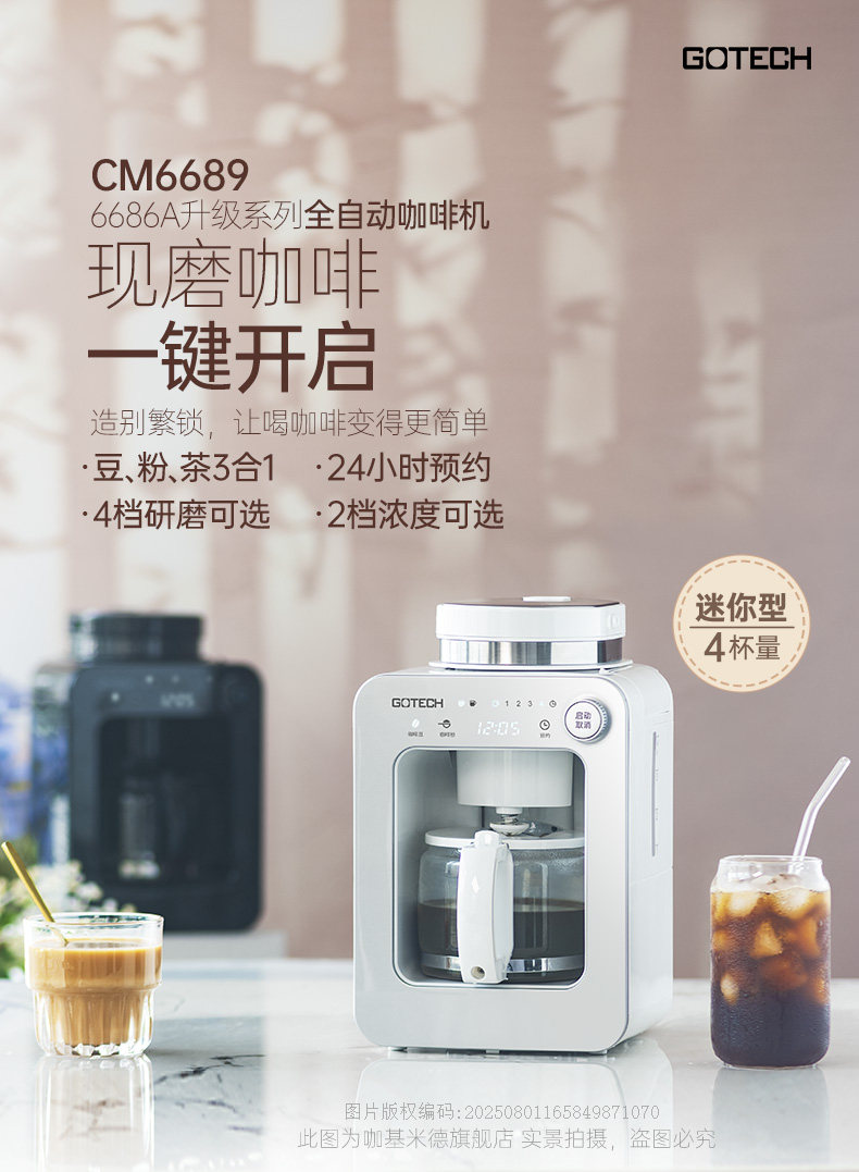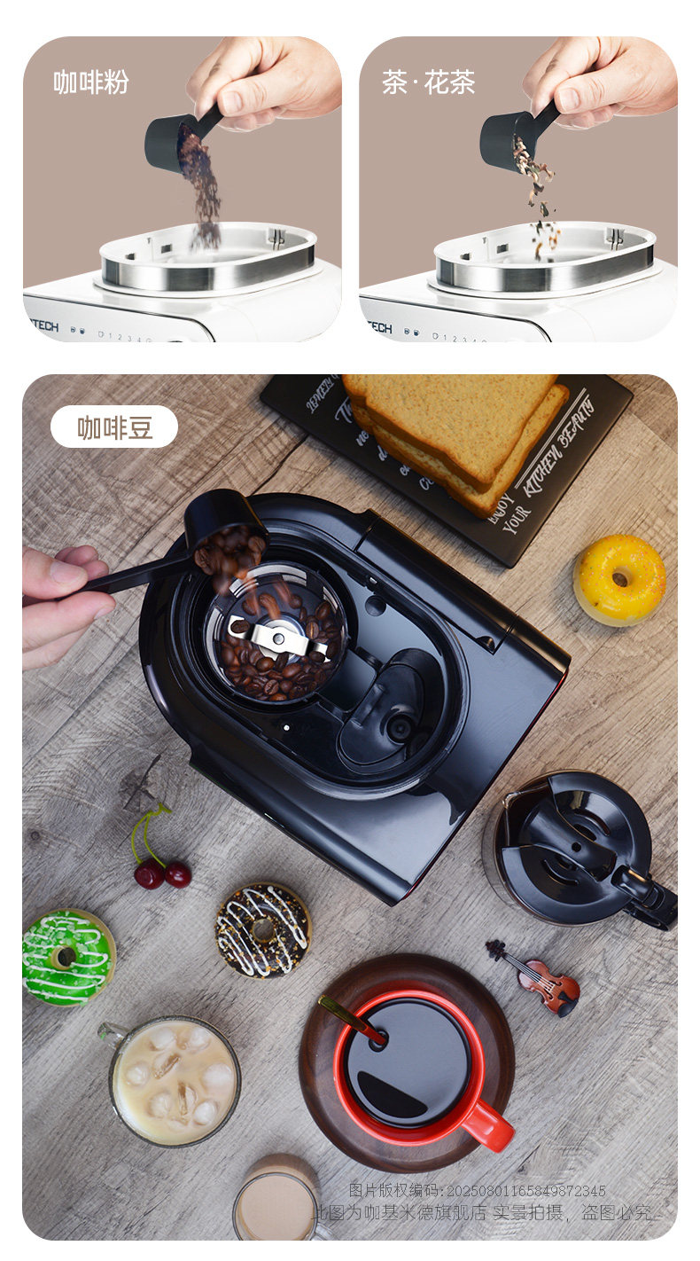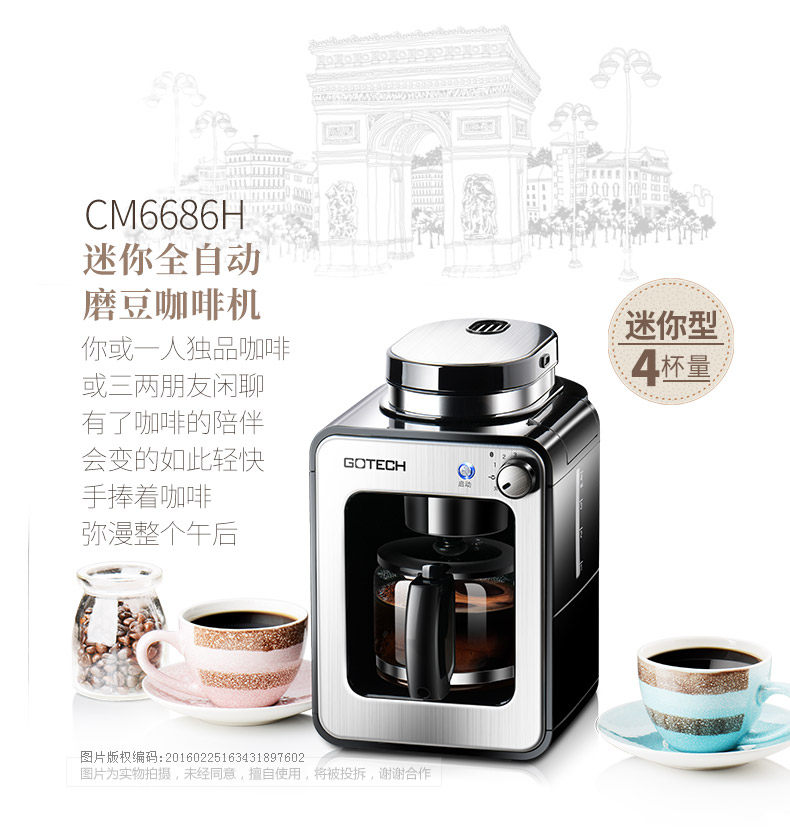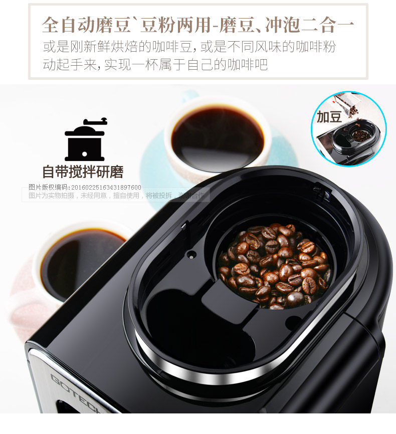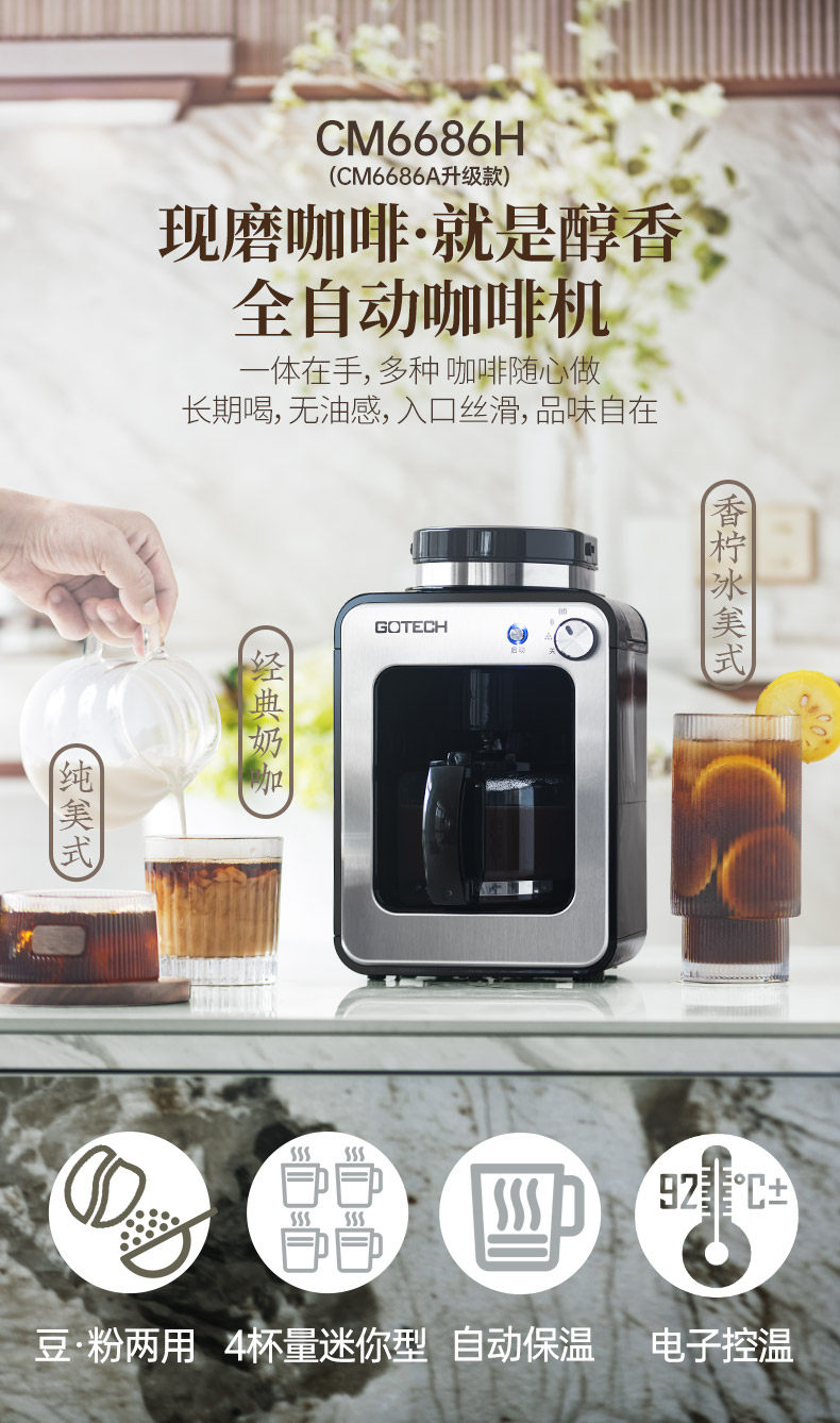 Gao Tai Cm6686A Freshly Ground Coffee Machine for Home Use, Fully Automatic All-In-One American-Style Mini Small Grinder, Dual-Purpose for Grinding Beans and Powder
