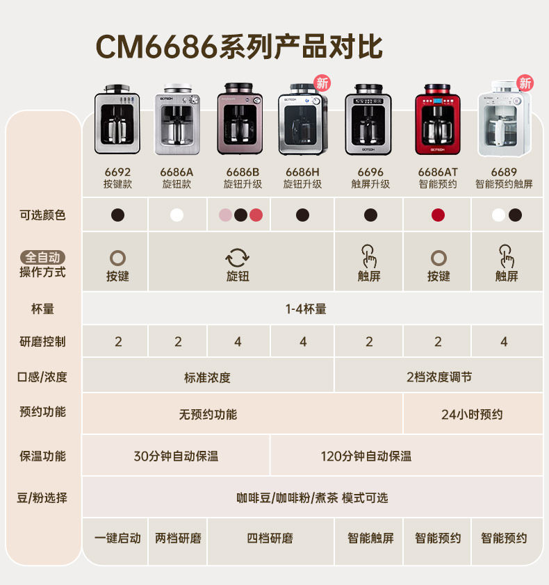 | Color Classification | Black,White,Button Style,Touch Screen Upgrade,Knob Upgrade - Rose Gold,Knob Upgrade-Matte Black,Knob Upgrade-Rose Red,Smart Reservation Payment-Cherry Red,Mirror Black (Four Levels of Grinding + Reservation + Touch Control),Australian White (Four Levels of Grinding + Reservation + Touch Control) |